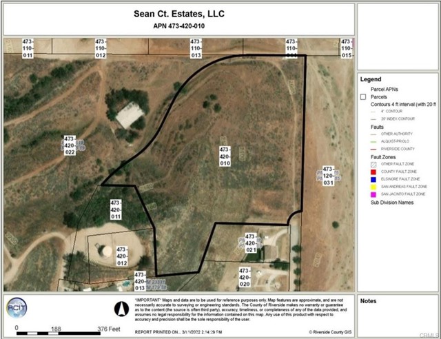 View Property overlooks Moreno Valley sits on 8.48 acres can be subdivided into 1 acre parcels, zoned R-A-1. Main access is at the end of Sean Court. There is a secondary access through an easement with the municipal water district. Potentially use is SFR on Large parcels.