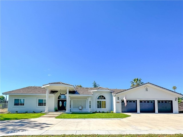 Showcase one acre estate in the foothills of South Redlands featuring canyon, trees and Sunset Views. This home is a Light & Bright, spacious single story home with 20 foot ceilings and features a gorgeous remodeled kitchen with massive quartz countertop island with the waterfall edge and stainless appliances.