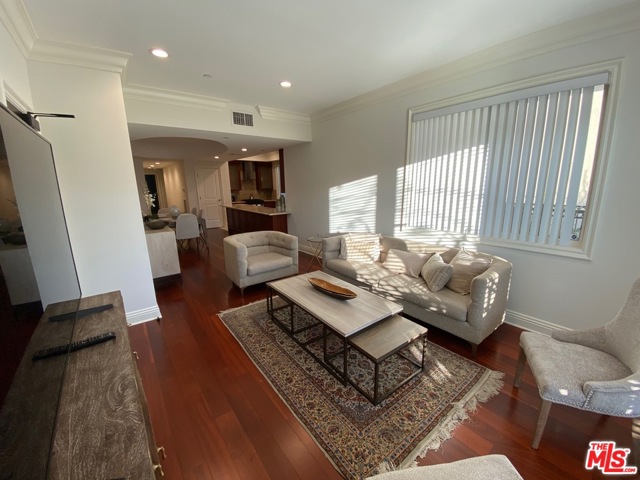 FULLY FURNISHED 2008-BUILT Beverly Hills ADJ. LUXURY CONDO. THE UNIT SPANS AN ENTIRE FLOOR. 3 BEDROOM, 2 1/2 BATH. OPEN FLOOR PLAN LIVING-DINING WITH HIGH CIELINGS, CROWN MOLDING, HARDWOOD FLOORS. FRENCH DOORS OPEN TO SPACIOUS FRONT BALCONY WITH CITY VIEWS. GOURMET KITCHEN WITH GRANITE COUNTERS, MOSAIC TRAVERTINE BACKSPLASH & SS APPLIANCES.