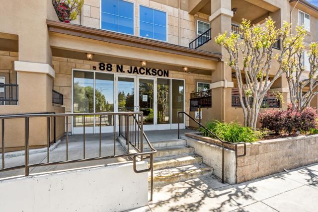 Welcome to your modern sanctuary at 88 North Jackson Avenue, Unit 414, located on the 4th floor of the desirable Jackson Park community. This beautifully appointed 1-bedroom, 1-bathroom condo spans 720 sq. ft., featuring an open-concept layout with vaulted ceilings and large windows that fill the space with natural light. The kitchen is equipped with granite countertops, a central island, and recessed lighting, seamlessly connecting to the living area and private balcony. Additional amenities include in-unit laundry and the gated community provides 24/7 security surveillance and secured underground parking conveniently located near the elevator. Enjoy resort-style amenities such as a swimming pool, spa, and clubhouse. this location offers easy access to major freeways I-680, I-280, and US-101, and is just minutes from downtown San Jose, Japantown, Costco, and the new BART station. Youll also find yourself within walking distance to the Regional Medical Center, healthcare facilities, and a park with a playground. Convenient public transit options, including bus stops and light rail stations, are nearby. Experience a sophisticated lifestyle in a vibrant area with all the comforts you deserve.