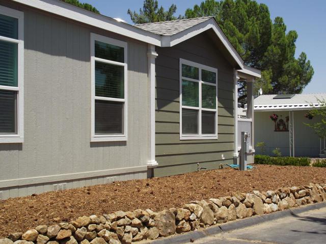 BRAND NEW HOME WITH NEW HOME FACTORY WARRANTY! Sitting on a quiet hill, in the lovely, back-country 55+ community of Stone Ridge. Appealing, exterior details include a covered porch, transom windows, white posts & trim, and horizontal siding accents. Rock, uncovered on site, has been hand fitted into a unique retaining wall. The interior also boasts special touches. Kitchen features large island, 42″ tall cabinets & walk-in pantry. GREAT PRICE INCLUDES LAND! Also included range, refrigerator & dishwasher. Open, comfort-sized Great Room offers a mountain top view, & is filled with natural light thru the transom windows. Walk-in wardrobe in Primary Suite has double rods, and the En Suite will meet needs with double vanities, walk-in shower, & linen storage. 2X6 construction and double-glazed windows help conserve energy, and a fire sprinkler system is an added safety measure. Enjoy leisure time in the Clubhouse, which offers a pool& spa, billiards, dance floor, library, gourmet kitchen and giant fireplace & TV. Centrally located between Temecula and Julian, along the North Mountain Wine Trail. Beautiful country with 4 seasons, clear night skies, exciting wildlife. A BEAUTIFUL WAY TO RETIRE. PLAN TO VISIT NOW!