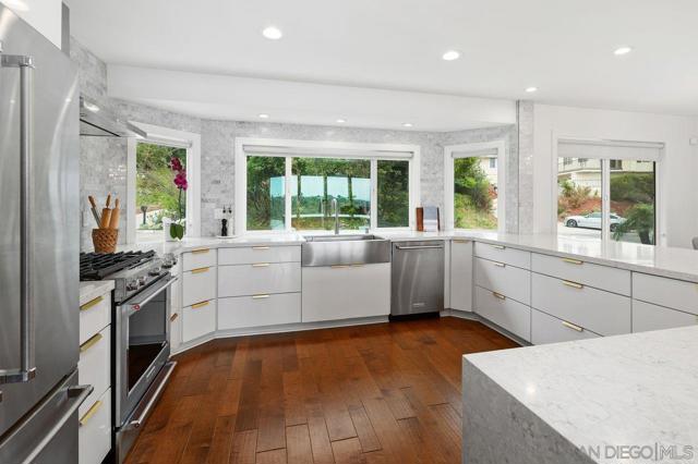 New Price Improvement! Breathtaking eastern and city skyline views from this newly rebuilt sleek and modern home in North La Jolla! This plenty spacious 3,861 square foot estate boasts 6 bedrooms and 6.5 baths with multiple skylights and vaulted ceilings that bring in an abundance of natural light. All rooms and baths are done with no expense spared on the interior finishes to create luxurious living. There are 3 view decks, 3 fireplaces, 3 zones of AC and heating, 2 water heaters and a 3 car garage. Enjoy the chef’s kitchen and great room that have expansive picturesque windows that frame the eastern views and combined with a modern elongated fireplace, creates a perfect ambiance for family and friends. As you enter the home, you will find 2 bedrooms upstairs, including the primary suite, a secondary primary bedroom on the main level with a newly added view deck. In addition, there are 3 spacious secondary bedrooms ensuite with bathrooms downstairs with 2 more view decks which is perfect for a growing family, guests or an Airbnb. Additionally, the home has fully permitted plans to build a 1,200 square foot ADU with a kitchen, 3 bedrooms and 3 baths. Beyond its stunning interiors and majestic views, the home is in a central location. Ideally situated close to La Jolla Shores, UCSD, the UTC Mall, Scripps Hospital, the La Jolla YMCA and quick access to Hwy. 5. A view forever and a home to love!
