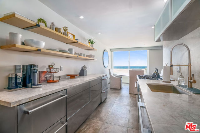 Short Term Options Available!!! Perched along the sand on Palisades Beach Road, this meticulously renovated, spacious 2 bed/ 2 bath beachfront sanctuary offers an exceptional blend of contemporary elegance and highly coveted coastal living. Upon entering, enjoy breathtaking waterfront views from the boardwalk to the ocean waves crashing on the shoreline. This well appointed residence features designer artwork, furnishings, appliances, fixtures and sophisticated finishes. The gourmet kitchen features a Bertazzoni oven/range, engineered in Italy and complemented by sleek Kitchen Aid appliances. Embrace the enchanting coastline views from every room as you unwind, entertain, or discover cherished moments of tranquility whether you stay indoors or admire a sunset from the oversized balcony all while in close proximity to countless shops, restaurants and all Santa Monica has to offer. After a day at the beach, enjoy a luxurious steam shower followed by movie nights enhanced with a premium Sonos soundbar for an immersive sound experience. Be pampered in the bathrooms as they offer smart OVE toilets boasting a variety of bidet and temperature settings. The inviting Primary bedroom offers panoramic views, ample closet space and balcony access. The secondary bedroom is quite cozy with a private en suite balcony and access to the well equipped laundry room. Amenities include a fitness center, intercom access, 2 gated assigned parking spaces, storage and guest parking.