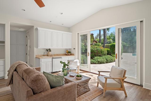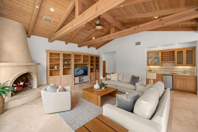 Exceptional floor plan and location — this single-story Spanish-Mediterranean estate rests on over 2.5 fully gated acres on a premier corner lot in the highly sought-after west side of the Rancho Santa Fe Covenant. Designed for privacy and seclusion, the main residence offers five en-suite bedrooms, a dedicated office, and a chef’s kitchen with Sub-Zero, and Viking appliances. Soaring vaulted ceilings and abundant natural light create an airy sophistication throughout. The detached guest house doubles as a pool house with new waterproof flooring, kitchenette, and full bath—perfect for guests, staff, or entertaining. Expansive grounds offer room for a putting green, tennis, or pickleball court. Ideally located minutes from the Rancho Santa Fe Golf Club, the Village, and coast, this estate blends timeless architecture, usable land, and unparalleled convenience.