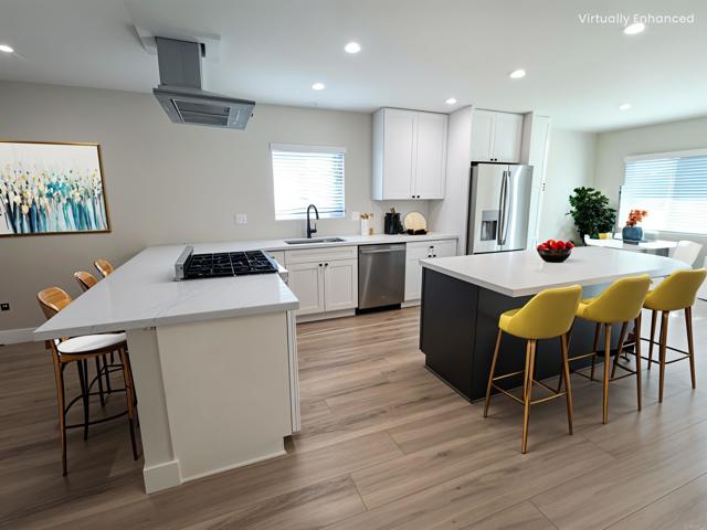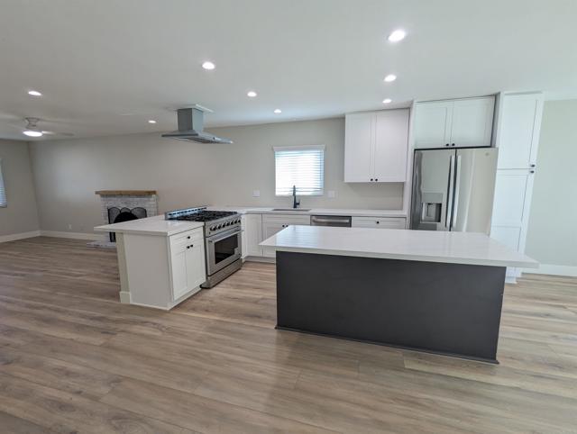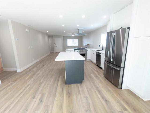 Freshly remodeled and updated inside and out. Desirable cul-de-sac location close to beach, downtown Oceanside, and commuting. You’ll love the great room layout of the kitchen with quartz counters offering informal dining, island with cabinets, gas cooking surface, impressive range hood, and stainless appliances including fridge, dishwasher, and large sink. New dual pane windows, central heat, quiet A/C, and gas log fireplace will keep you comfortable year round. Tankless water heater, laundry hookups, sink, and sectional door can be found in the garage where there’s room for storage and 2 vehicles. Ceiling fans offer function and style. 2 closets in the primary bedroom and 1 of the other bedrooms has a walk-in. Out back there’s good privacy, patio options, and some grassy area to play. Lots of space on the south side could work for adding a shed or two. Pets are negotiable and a 12 month lease to start.