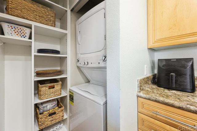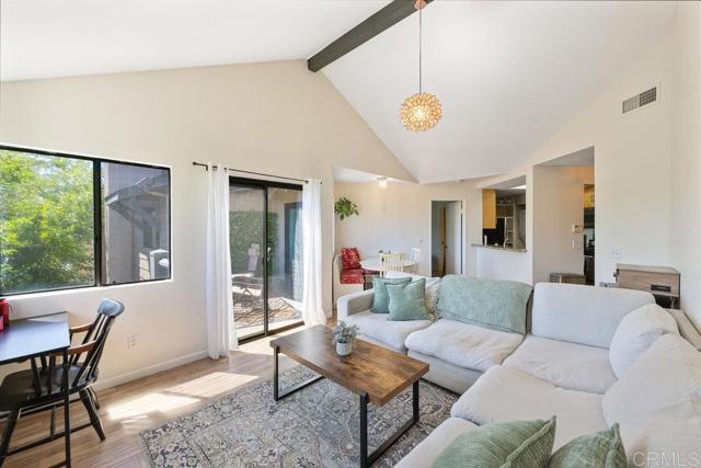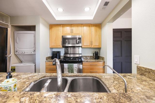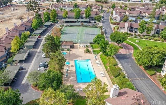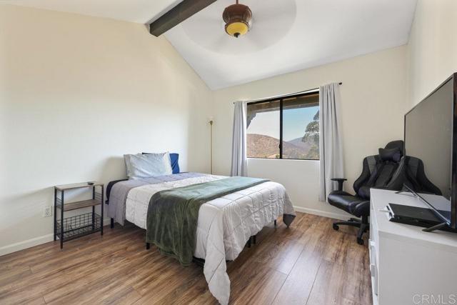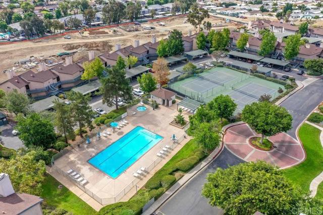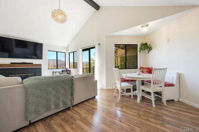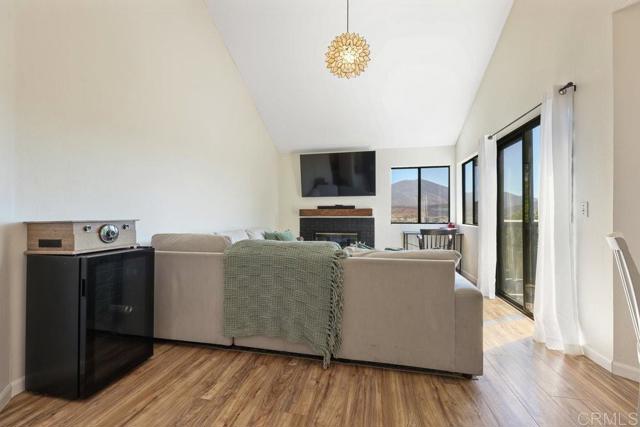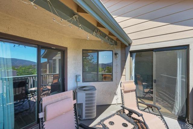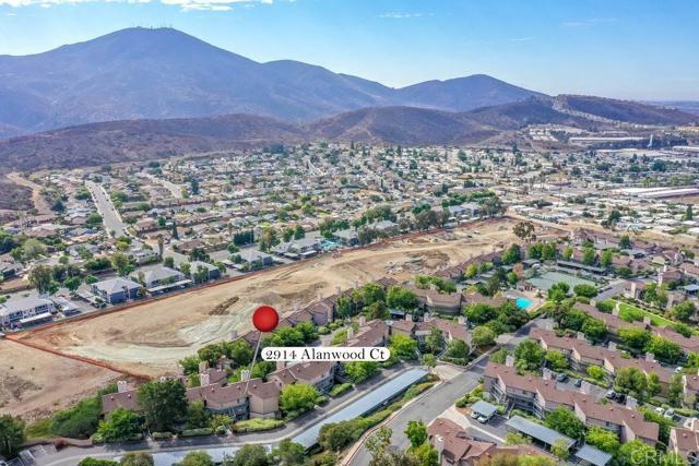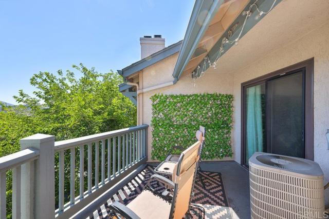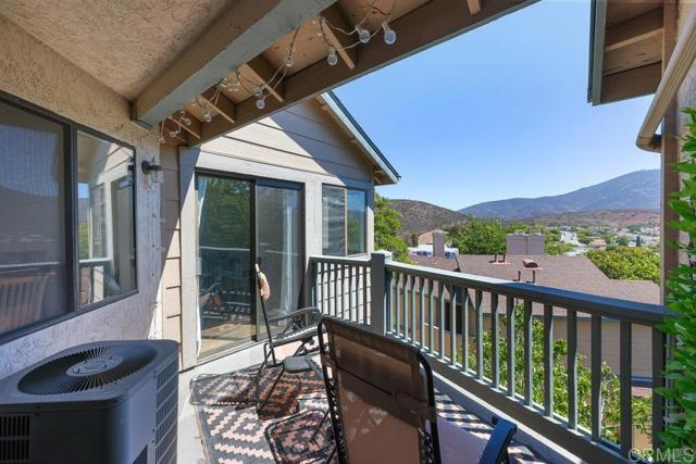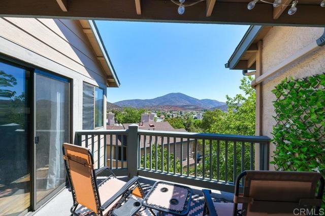 Located in the highly desirable Ranchwood Park Community of Spring Valley, this beautifully upgraded single-level condo features 2 private bedrooms with full bathrooms on opposite sides for ultimate privacy, a bright open living space with vaulted ceilings, exposed beams, a cozy fireplace, and an oversized balcony showcasing breathtaking 360° mountain views of the Sweetwater Mountains. The primary suite opens to the balcony, while the kitchen offers granite countertops, stainless steel appliances, and a convenient stackable washer/dryer inside the unit. Recent upgrades include a new water heater along with central A/C and heating. Enjoy resort-style community amenities including a year-round heated pool, spa, BBQ grills, tennis courts, dog park, and direct access to nearby hiking and walking trails. The condo also comes with a covered carport and enclosed storage. Perfectly located just minutes from Highway 94, the Sweetwater River Trail, Vineyard Hacienda, Edwards Cinema, and Hooleys Public House, with the exciting new Calavo Park expansion on the horizon offering sports fields, pickleball courts, a skate park, and more. HOA covers water and trash—this move-in ready condo truly has it all!