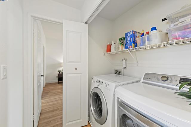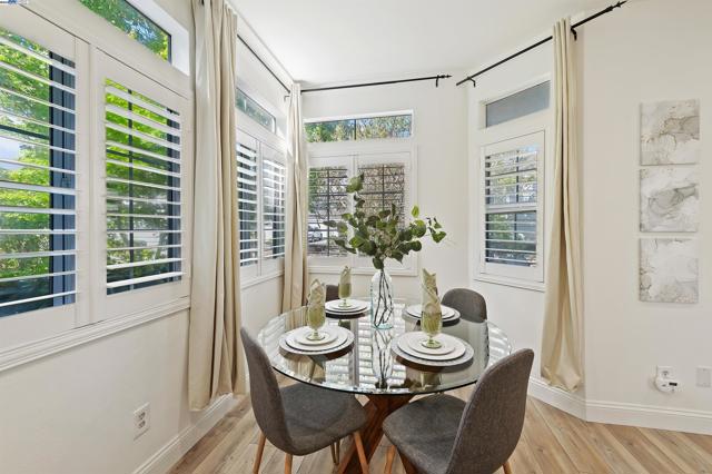 Beautifully updated ground-floor condo in Pleasanton’s desirable Canyon Meadows community! This bright and airy 2-bedroom, 2-bath home features fresh interior paint, luxury vinyl flooring, plantation shutters and a remodeled kitchen with quartz countertops, upgraded cabinetry, new smart oven/air fryer and recessed lighting. The spacious primary suite offers a large walk-in closet and private balcony, while the living room opens to a second balcony—perfect for indoor-outdoor living. Both bathrooms have been remodeled and there is a washer and dryer inside the unit. There is also a new furnace from 2024 and new heat pump. A detached 1-car garage with a private driveway provides secure parking and extra storage. Resort-style amenities include two pools, hot tubs, a fitness center, tennis, basketball and volleyball courts, a clubhouse, and greenbelt areas. HOA dues cover water and trash. Convenient location near top-rated Pleasanton schools, shopping, dining, BART, and freeways (580/680), this move-in-ready home combines comfort, convenience, and community living.