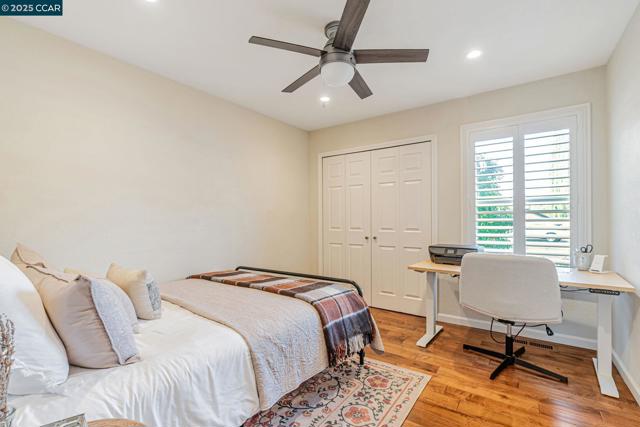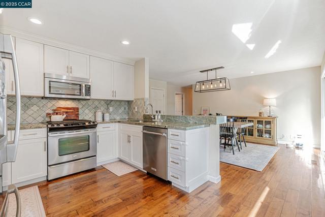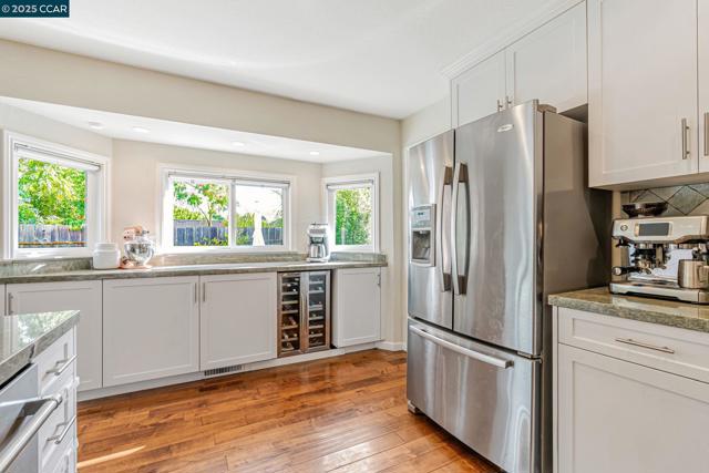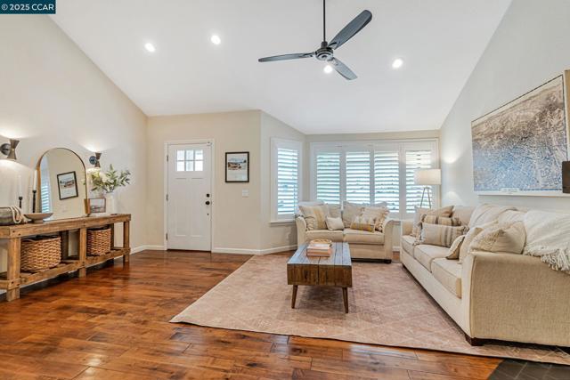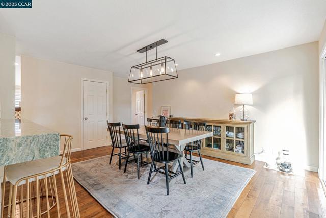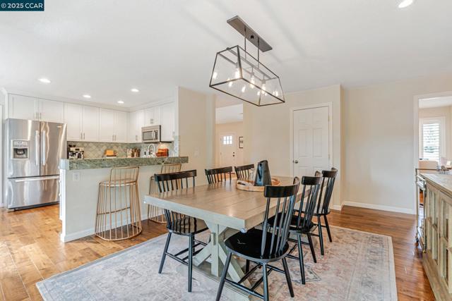 Experience exceptional curb appeal with this beautifully updated, single-level home situated at the end of a quiet cul-de-sac, conveniently close to Silverwood Elementary School. Inside you will discover gleaming hardwood floors throughout and a gourmet kitchen that’s a chef’s dream. Enjoy your meals in the spacious dining room. The family room, added in 2017, features a wall of desk space with elegant soapstone countertops. This area seamlessly opens to a professionally landscaped backyard, perfect for entertaining with its multiple seating areas, a terrific deck, lush lawn, and vibrant planting beds. The living room offers a stunning view of the well-manicured front yard and boasts a stylish, contemporary fireplace surround. Both bathrooms have been thoughtfully upgraded to enhance comfort and style. Outside, the front yard is adorned with delightful, raised beds and an inviting arbor where you can relax and enjoy the tranquility of the neighborhood. Additional off-street parking adds to the convenience of this truly turnkey home. This house is truly turnkey and can attend Clayton Valley Charter or Northgate, per the district.