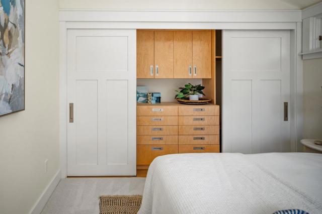 It has it all! This newly constructed 3 bedrooms and 2.5 baths, craftsman style home, is designed by Thomas Bateman Hood. The property is steps from the center of Carmel Village, with views of the water and a long list of amenities, that make this a truly unique property. There is lots of attention to details with coffered and wood ceilings, American white oak wood floors, radiant heating throughout, solar energy system with battery back-up, two Tesla wall charges, lots of built in storage and bonus basement rooms in the oversized garage, outdoor kitchen and the list goes on. Come and experience this well-crafted home.