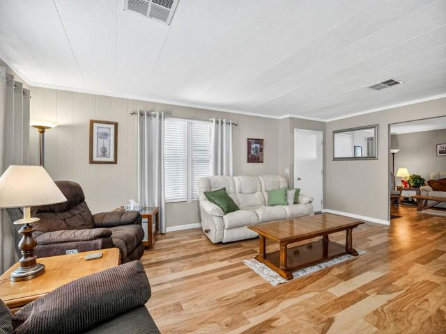 Welcome to Morgan Hill! This charming 2-bedroom, 2-bathroom home offers 1,536 sq. ft. of comfortable living space in the desirable Woodland Estates 55+ community. The thoughtfully designed kitchen features unique Quartz countertops, blending style and functionality for all your culinary creations. The separate family room provides the perfect spot for cozy gatherings or relaxing evenings, while elegant hardwood flooring throughout enhances the homes warm and inviting atmosphere. The spacious laundry room offers added versatility, its large enough to double as an office, hobby, or craft space. Enjoy meals in the dining area, perfect for both everyday living and entertaining guests. Woodland Estates offers a variety of activities and amenities for active seniors, making it easy to stay social and engaged. Experience the ideal balance of comfort, convenience, and community in this welcoming home.