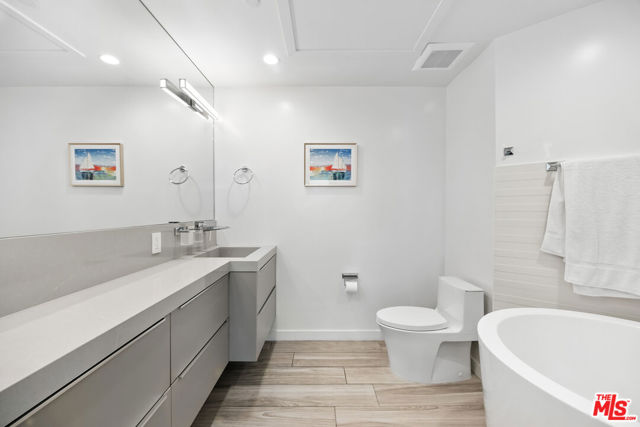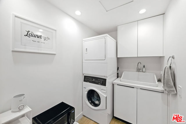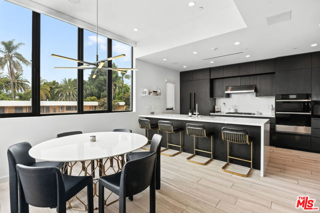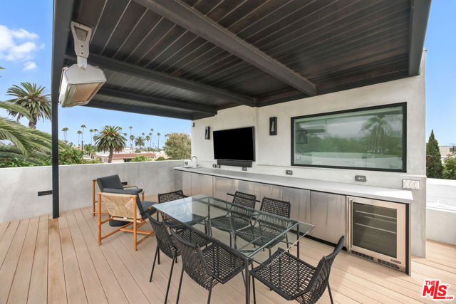 Stunning new construction home in the Heart of Santa Monica. Designed by acclaimed architect Dennis Gibbens, this brand-new 4 bedroom, 4.5 bath residence combines striking modern architecture with functionality. Fully gated with a secure entry and private direct-access garage, the home offers complete privacy while sitting just moments from the best of Santa Monica. The showpiece of the property is the spectacular 900 SF private rooftop deck, featuring panoramic views and every amenity for entertaining: a full outdoor kitchen with built-in BBQ, beverage fridge, beer tap, gas heater, outdoor dining and multiple lounge areas. Inside, soaring ceilings and walls of glass create a bright, open floor plan. The custom gourmet kitchen boasts top-of-the-line JennAir appliances, an oversized island with seating and abundant storage. The primary suite is a true retreat with a spa-like bath featuring an oversized shower and heated floors. A separate lower-level includes a spacious family room and two additional bedroom suites. This smart home is outfitted with Crestron automation, exterior security cameras, whole-house audio, electronic window shades, three Samsung Frame TVs and included high-speed internet service. Additional features include a private elevator to all levels, fast electric car charging and a cutting-edge rotating garage carousel for forward-street exit. A rare architectural offering with the very latest home automation amenities. Move-in ready October 21st.