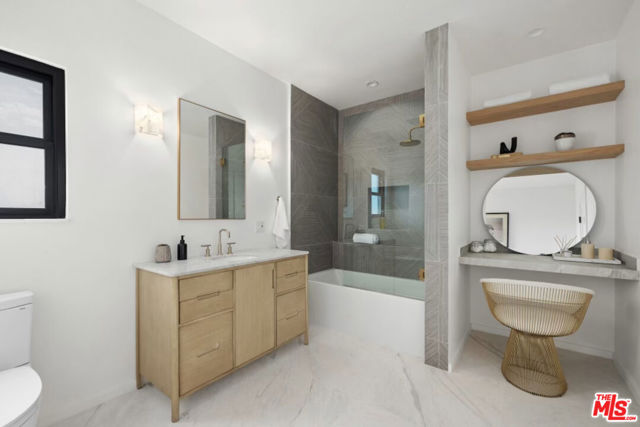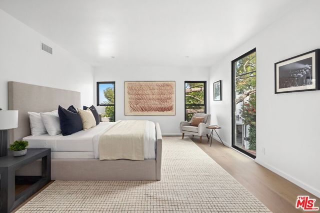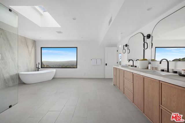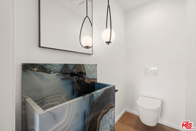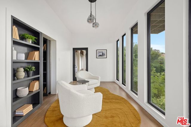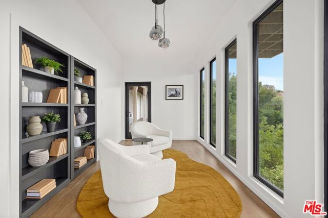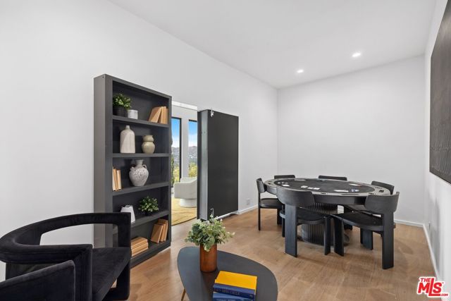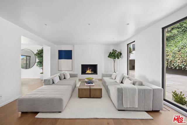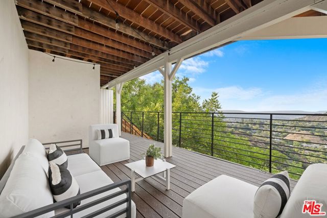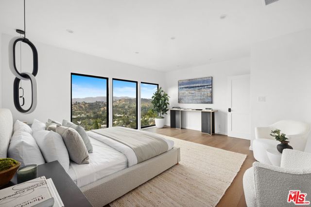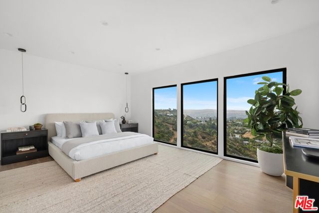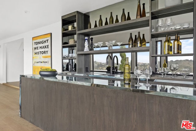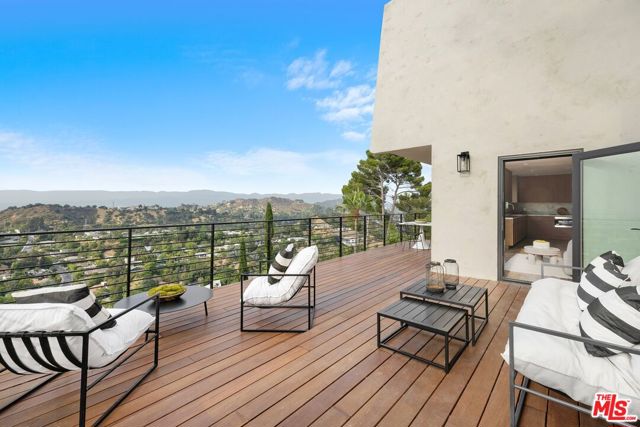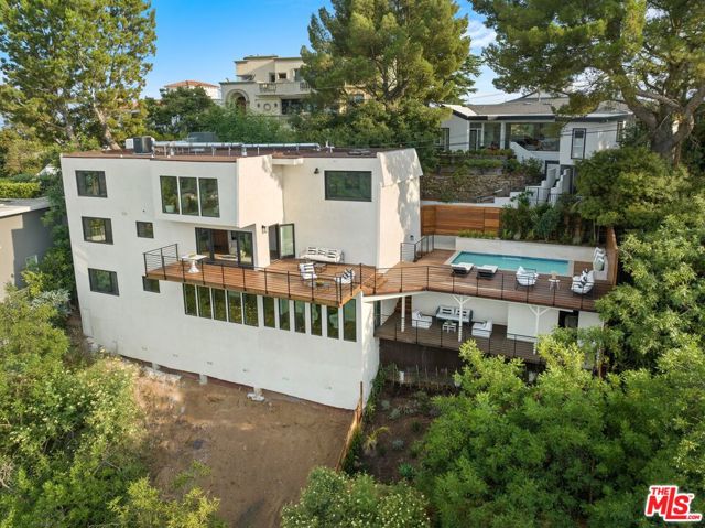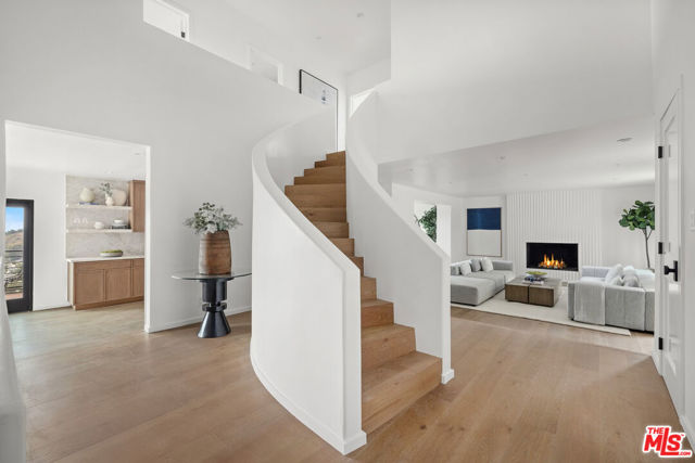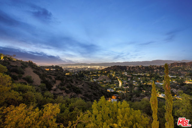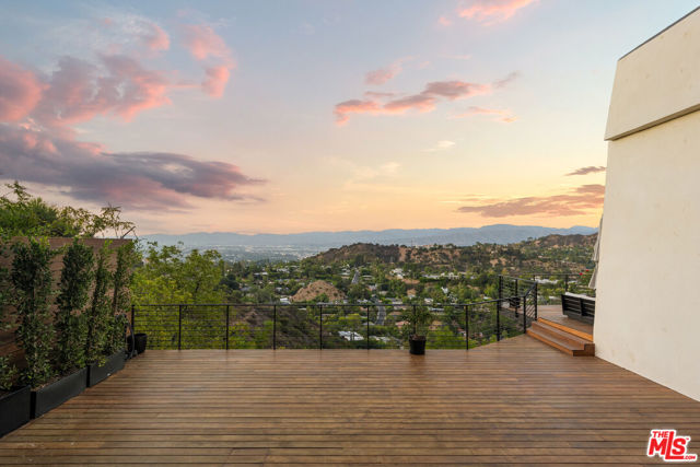 High above Laurel Canyon, the Skyline Residence is a private retreat where sweeping city and mountain views frame every moment. Expansive decks and a heated pool create an unmatched vibe–perfect for sun-soaked days, unforgettable nights, and effortless entertaining. From the moment you arrive, the home makes a striking impression. A sculptural curved plaster staircase rises beneath soaring ceilings, setting the stage for a space designed for both sophistication and comfort. The main level flows effortlessly from a statement-making living room to a dining area and into a chef’s kitchen appointed with custom oak cabinetry, quartzite counters, and top-of-the-line appliances. Walls of glass slide away, extending the living space onto the deck in a seamless expression of indoor-outdoor living–the very essence of the California lifestyle. The upper deck boasts a heated pool with panoramic city views and space for dining or lounging. Below, a covered terrace invites yoga sessions, cocktails, or shaded afternoons, while a private staircase winds down to a landscaped garden retreat. Upstairs, the primary suite is a true sanctuary. Wake up to walls of glass framing the skyline, then escape to a spa-like bath with a freestanding tub, stone-clad shower, custom vanity, and skylight that bathes the space in natural light. A boutique-style walk-in closet completes the suite. Two additional bedrooms and a sleek full bath offer flexibility for family or guests. The lower level is pure indulgence–an entertainer’s playground with multiple lounge areas, a striking custom bar, and even a hidden room tucked behind a bookshelf. The possibilities are endless: office, screening room, recording studio, wine cellar, or wellness lounge. Smart home features include a Lutron lighting system, integrated speakers, and a two-car garage. Situated on a quiet street in Laurel Canyon within the coveted Wonderland School district, you’ll enjoy unmatched privacy just minutes from the energy of West Hollywood, Beverly Hills, and Studio City. The Skyline Residence isn’t just a home it’s a lifestyle, a statement, and a masterpiece of design.
