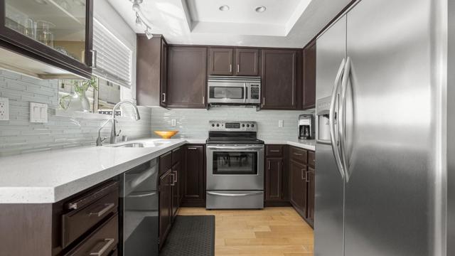 Move in and enjoy this gorgeous two primary suite townhouse with enormous garage. Nestled near Los Gatos. Stunning kitchen with stainless steel appliances and quartz countertops. Spacious open living and dining area. Both bedrooms are primary suites with high ceilings and attached full bathrooms. Beautifully updated bathrooms. Interior laundry near bedrooms. Great light. Central A/C. Double-pane windows. Private dining patio area. Attached oversized 2 car garage. Extra deep garage. Walk or bike ride to many parks and amenities of Los Gatos, Campbell and Cambrian neighborhoods. Easy access to freeways and expressways. Award-winning schools.