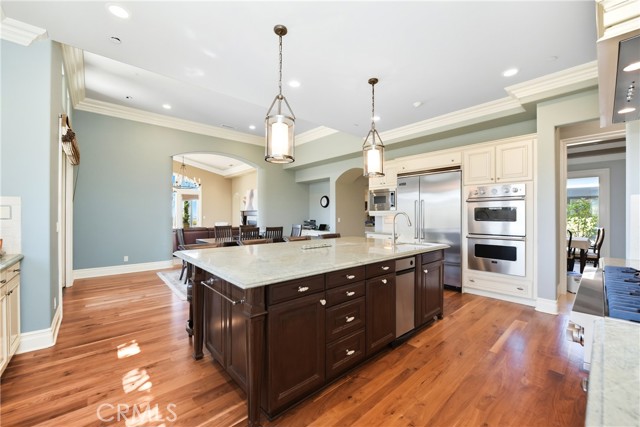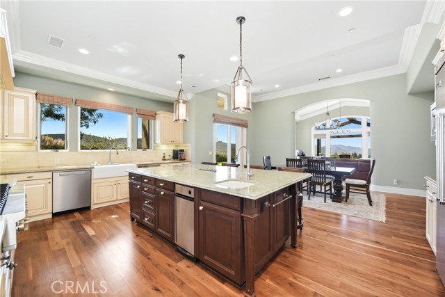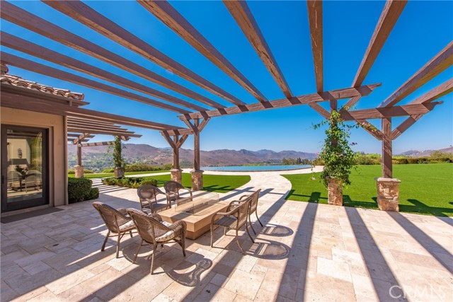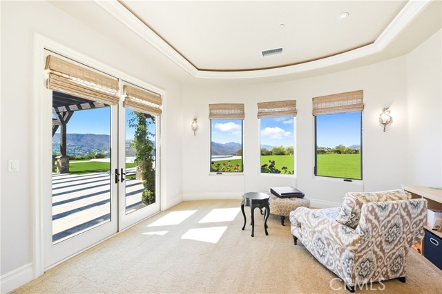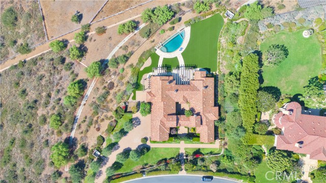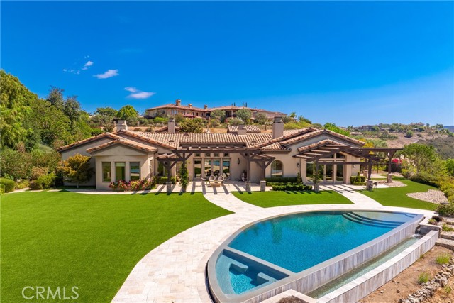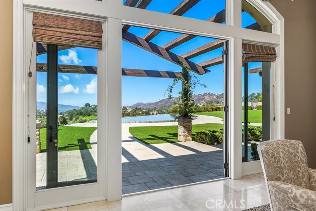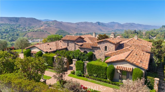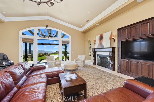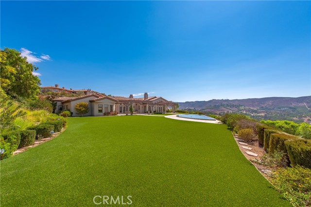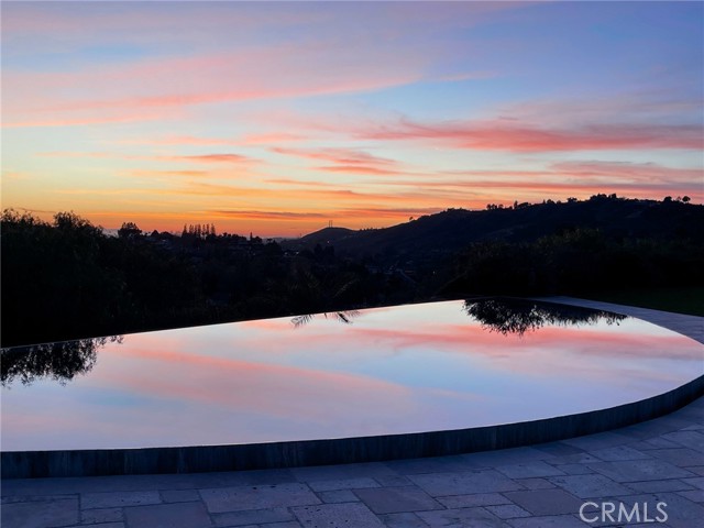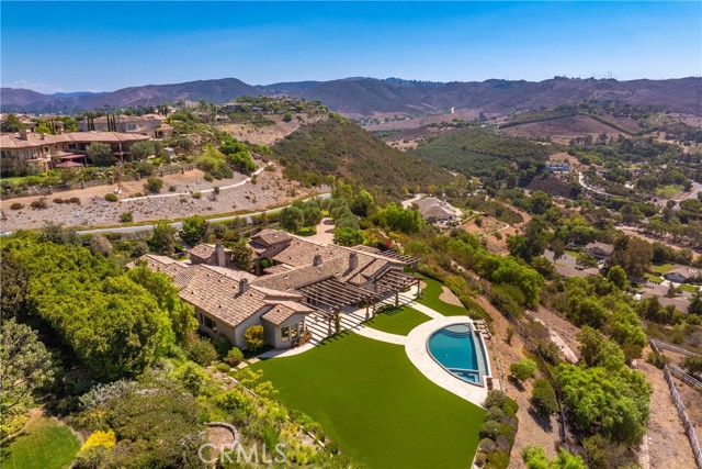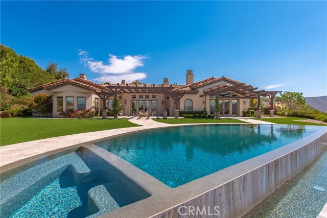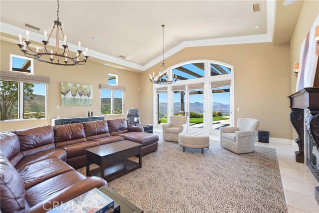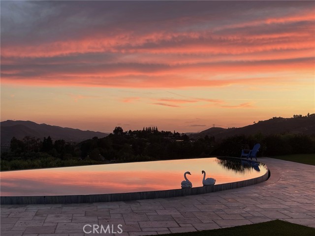 Nestled within an exclusive gated community, this residence offers the perfect blend of privacy, sophistication, and breathtaking views. Framed by lush landscaping and sweeping panoramas, it’s a serene retreat designed for both relaxation and entertaining.rnEnter through a gated courtyard complete with a cozy fireplace and sitting area—a tranquil welcome before stepping inside. The home opens to a bright formal living space where French doors flow seamlessly to an expansive patio, infinity-edge pool, and backyard with cinematic mountain vistas.rnThe chef’s kitchen is a true centerpiece, featuring a generous island, Viking and Miele appliances, a large walk-in pantry with an additional refrigerator, and a butler’s pantry that connects to the elegant formal dining room. An informal dining nook transitions into the spacious family room, where soaring ceilings and walls of French doors showcase the striking pool and mountain views. A custom wet bar with wine refrigerator elevates the space for gatherings.rnA private guest or staff suite, complete with en-suite bath, is tucked just off the kitchen. The grand primary suite is a retreat of its own, offering a fireplace, reading nook, and panoramic views—ideal for a lazy morning or sunset unwind. The spa-like bath features dual vanities, dual walk-in closets, a clawfoot soaking tub, oversized shower, water closet with bidet, and exquisite finishes throughout.rnThree additional en-suite bedrooms provide comfort and flexibility, while a fourth serves perfectly as a home office. For entertainment, a secluded cinema room—tailored with plush seating—offers the ultimate at-home movie experience.rnOutdoors, the more than 1.5-acre grounds are designed to impress, highlighted by the infinity pool that appears to melt into the horizon. A long private driveway leads to a three-car garage with Tesla charger.rnThis home isn’t just a residence—it’s a lifestyle, combining luxury, privacy, and stunning natural beauty.