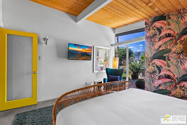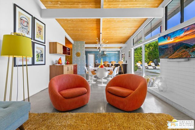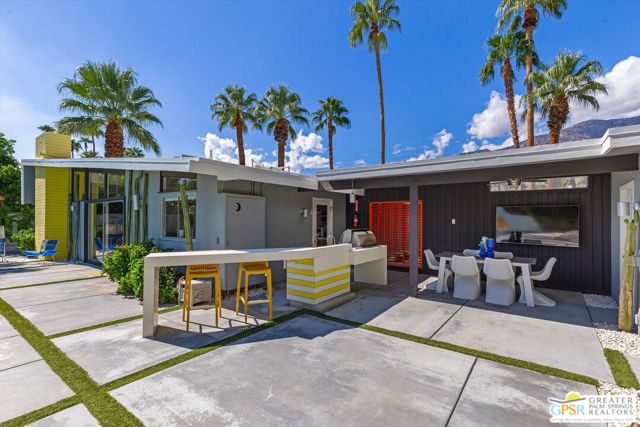 Renowned architect William Krisel is best known for his iconic butterfly roofline designs and likely created more of them than any other architect. This home is a perfect example of why his work was so important and continues to enthrall us to this day. The dramatic, soaring roof not only echoes the silhouette of the surrounding mountains but also allows for expansive clerestory windows that blur the line between indoors and out, flooding the interior with natural light and truly bringing the outdoors in. Krisel’s designs for the Twin Palms neighborhood, developed in 1957 for the Alexander Construction Company, were elegantly simple, highly livable, and revolutionary in showing how cutting-edge architecture could be brought to the mainstream market. Now thoughtfully updated, this home invites you to experience Krisel’s vision in a contemporary way. It features three bedrooms and two bathrooms, along with two additional bonus rooms accessed from the exterior, ideal for a studio, office, or guest space. The open-concept kitchen flows into the dining and living areas, which extend outward to a private pool, spa, and patio. A covered outdoor entertainment area with built-in BBQ completes this quintessential Palm Springs lifestyle experience.
