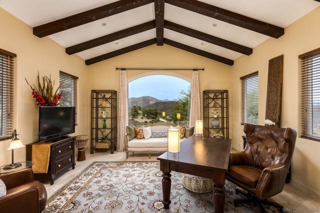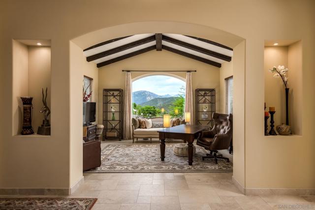 Fall in love with this one-of-a-kind custom built home in the exclusive gated community of Rancho Palo Verde in Alpine. The grand formal entryway invites you to great room that serves as the heart of the home with 21 ft high cathedral ceilings and 10×10 exposed solid beams. This architectural masterpiece features a spacious and functional floor plan with seamless integration from the indoor to outdoor living areas. 3 Covered patios, built in BBQ & wood burning pizza oven, 2 expansive lawns, & beautiful views of Cleveland National Forest. The chef inspired kitchen features Bardon cabinetry, Monogram refrigerator, Dacor 6-burner cooktop, double convection ovens, pot filler, walk-in pantry, and butler’s pantry/bar with beverage fridge. The primary suite and spa inspired bathroom featuring a large soaking tub, dual vanities, dual private toilet rooms, bidet, expansive granite walk-in shower, and large custom built walk in closet. Bedroom 2 and 3 feature ensuite full bathrooms and walk-in closets. Option to convert the office to a 4th bedroom. Built in 2010 with 2×6 framing for strong structural integrity and energy efficiency, dual HVAC, quad-zone heating/cooling, dual tankless water heaters, and independent bathroom heaters. Additional features include Anderson windows & doors, marble flooring throughout main living areas, prewired intercom and alarm system, and indoor and outdoor dog kennel. First time on the market, this residence offers over 4 acres with room for an ADU, pool, barn, or RV parking. Set amid the mountains at about 1,800 feet in elevation and roughly 33 miles inland from the Pacific Ocean, this private Ranch encompasses 233 home sites ranging from two to eight acres each. Its location delivers comfortable weather throughout the year-warm, sunny summers; crisp winters; and mild, pleasant springs and autumns. Residents have access to two scenic lakes complete with pavilions, as well as a clubhouse, tennis court, and a dedicated horse-riding arena. Miles of riding and hiking trails wind through the property, so horse owners can simply saddle up-no trailering required. The members-only clubhouse, which overlooks the 50-acre Palo Verde Lake with its sandy beach and floating swim platforms, offers plenty of ways to enjoy the water. Residents can swim, fish, kayak, paddle board, sail, or moor their electric boats right on the lake. Next to the lake sits a spacious covered pavilion outfitted with picnic tables, restrooms, and BBQs, plus a sand volleyball court, badminton court, horseshoe pit, and children’s playground. The clubhouse itself can be reserved for gatherings large or small and features a fireplace, dance floor, pool table, sauna, fitness room, and a full kitchen and bar.