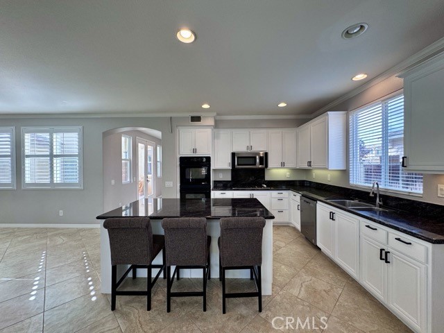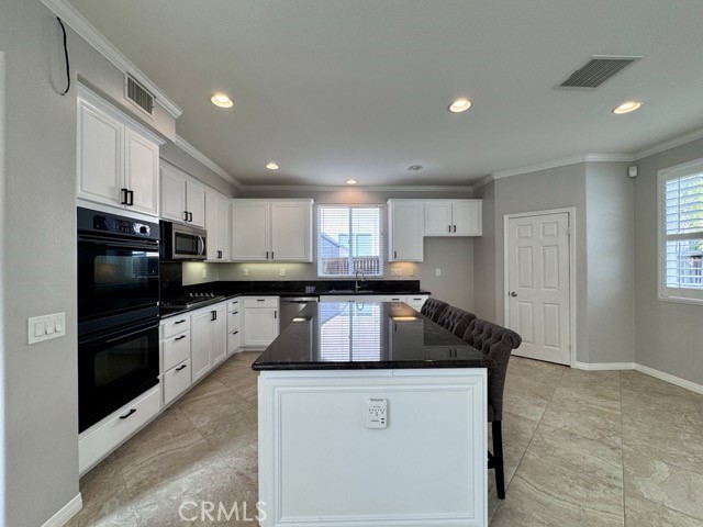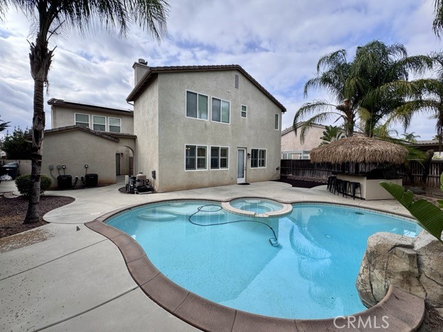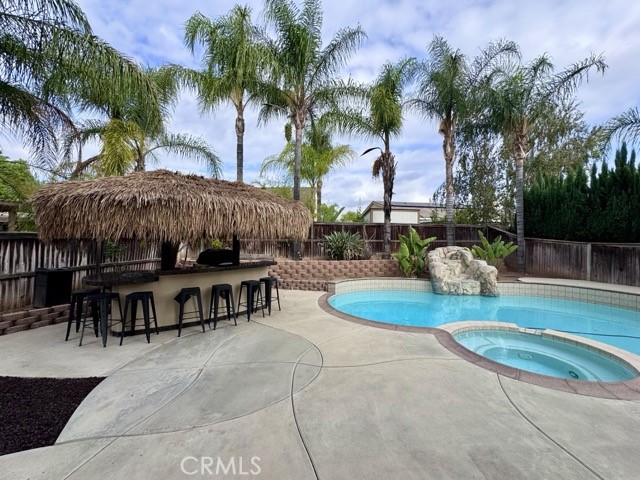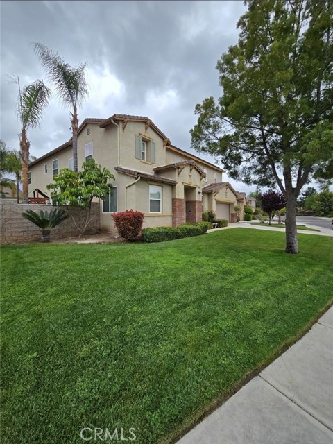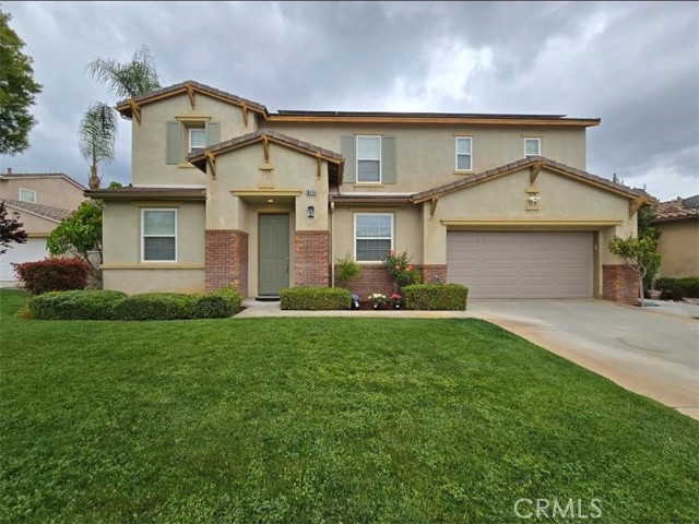 Offering stunning curb appeal and a spacious 3 car tandem garage, this home is packed with features for modern living, including solar, dual AC units with Nest smart thermostats, a whole house fan, and a gardener and pool service included for hassle-free maintenance. Enter inside and be greeted by soaring ceilings, abundant natural light, and a spacious, thoughtfully designed layout. The home features formal living and dining areas, along with a generous bonus room and a wonderful and spacious floorplan. The gourmet kitchen boasts white cabinetry with sleek black hardware, dark granite countertops, black and stainless steel appliances, including a double oven, an oversized island, and a walk-in pantry. It opens seamlessly to the inviting family room with a cozy fireplace, a custom accent wall, and stylish shuttered windows. The main level also includes a spacious bedroom with a walk in closet and a laundry room which includes a sink for added convenience. Upstairs, an oversized loft/bonus room provides even more flexible living space. All bedrooms are generously sized, while the luxurious primary suite serves as a private retreat with large scenic windows, an accent wall, and an ensuite featuring dual sinks, a separate vanity, an oversized soaking tub, a walk-in glass shower, and a walk-in closet with dual access doors. Outside, enjoy a true backyard oasis. A central courtyard with an outdoor fireplace sets the mood for relaxing evenings, while the expansive backyard features a sparkling pool and spa with water feature, a built-in BBQ tiki bar, lush landscaping, and a large side yard with a playset including a slide and swings, making it perfect for families or entertainers alike. Located in the highly sought-after Temecula School District, and just minutes from parks, shopping, dining, and more, this meticulously maintained, energy-efficient, and amenity-rich home is ready for you to move in and enjoy!