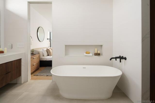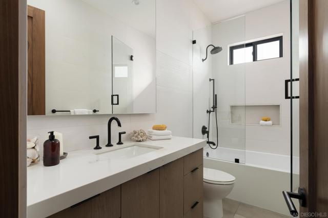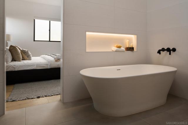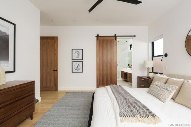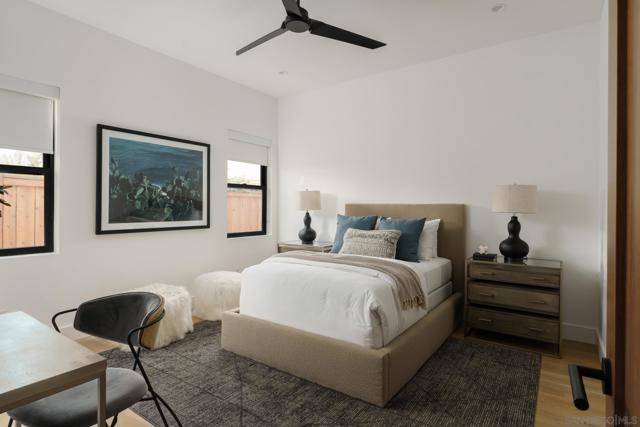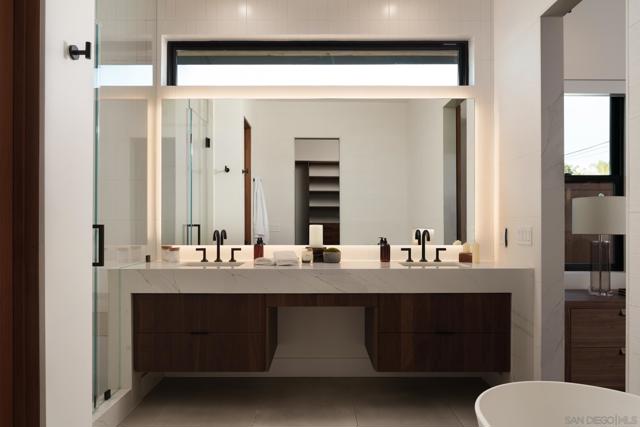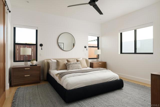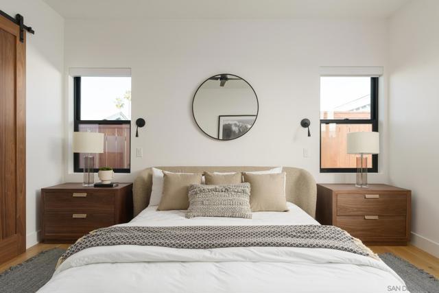 Stunning Contemporary Home for Lease in Bay Park Perched above Frankfort Street in Bay Park, this newly built 3 bedroom, 2.5 bath home blends modern design with warm, luxurious finishes. Designed for seamless indoor-outdoor living, the residence opens to an expansive 800 SF courtyard patio featuring a private Jacuzzi and open-air lounge, perfect for entertaining or unwinding at home. Inside, soaring 10-foot ceilings and oversized windows flood the space with natural light, highlighting European oak floors and high-end craftsmanship. The sleek kitchen is a chef’s dream with quartz countertops, built-in Thermador appliances, and custom cabinetry. The spacious primary suite offers a spa-like bath with large shower and walk-in closet, while the secondary bedrooms feature matching custom closets. Smart-home technology enhances everyday living with security cameras, motorized roller shades, a sealed gas fireplace, infrared patio heaters, and built-in Sonos speakers. A climate-controlled hybrid garage-office-gym adds flexible use of space, while 1,200 SF of accessible storage provides excellent organization options. Located in one of Bay Park’s most desirable enclaves, this home offers elevated coastal living with modern comfort and style. 1 year minimum lease. Landlord to pay for gardening and jacuzzi maintenance. Tenants are responsible for SDGE.