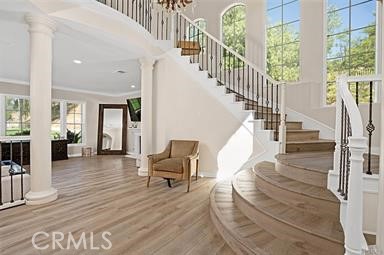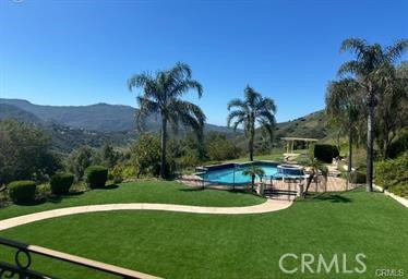 Resort-Style Living with 360° Views in Calabasas Park Estates. Welcome to your private retreat in the exclusive gated community of Calabasas Park Estates! This stunning estate offers over 5,400 square feet of luxury living, featuring 5 spacious bedrooms, 5.5 bathrooms, and breathtaking 360-degree views from nearly every room. Step inside to find a thoughtfully designed layout with a gourmet eat-in kitchen, built-in home office, and a grand primary suite complete with panoramic views, a spa-inspired bathroom, and an expansive walk-in closet. A large bonus area and full gym add to the versatility of the space, while two elegant staircases provide a touch of sophistication and convenience. Your backyard is a true staycation paradise—designed for both relaxation and recreation. Enjoy a sparkling pool with swim-up bar, pickleball and bocce ball courts, a basketball zone, yoga retreat, built-in BBQ area, and lush, park-like grounds. This home is the perfect blend of luxury, comfort, and lifestyle in one of Calabasas’ most sought-after communities.