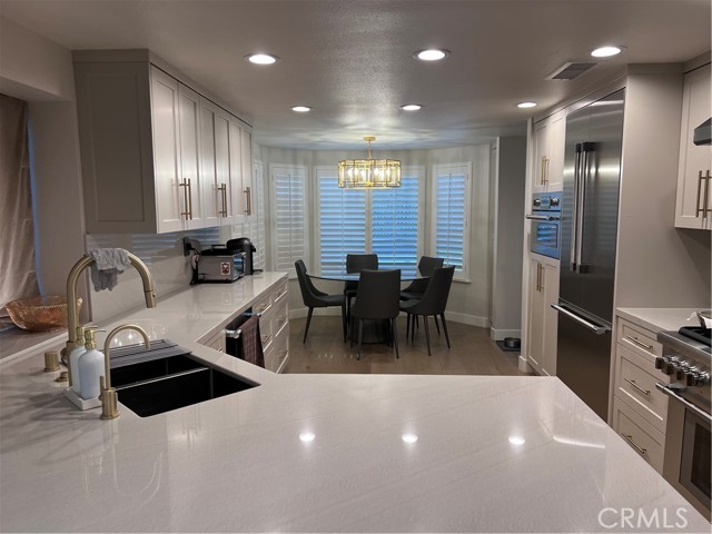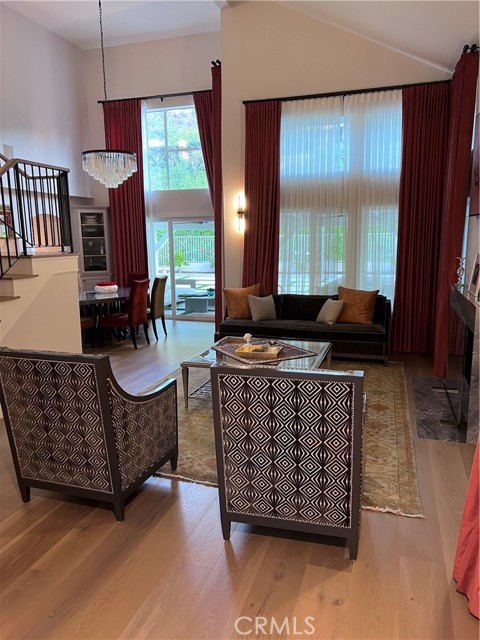 Welcome to this exquisitely renovated two-story residence, nestled within the prestigious guard-gated community of Calabasas Hills. Perfectly positioned across from Bay Laurel Elementary, the neighborhood offers resort-style amenities including two sparkling pools and a tranquil park for residents to enjoy.rnrnReimagined in 2023, the first level impresses with soaring ceilings, abundant natural light, refined light oak flooring, and two elegant dolomite fireplaces. The chef’s kitchen is designed for both beauty and function, showcasing natural quartzite countertops, custom shaker cabinetry, and top-of-the-line built-in Thermador appliances. Completing the main floor are two bedrooms, a full bathroom, and a spacious laundry room.rnrnUpstairs, the expansive primary suite is a serene retreat with its own ensuite bathroom, accompanied by two additional bedrooms and a third bathroom with striking marble floors and dolomite countertops. The oak flooring continues throughout the second level, enhanced by thoughtful cabinetry and ample storage.rnrnOutdoors, the property has been meticulously upgraded with new concrete and turf across the driveway and backyard. An entertainer’s dream, the backyard features a built-in barbeque island framed by vibrant plants and rose bushes, creating the perfect setting for gatherings.rnrnThis turnkey home blends elegance, comfort, and modern convenience—move right in and experience the lifestyle Calabasas Hills has to offer.rn*18+ month lease agreement.