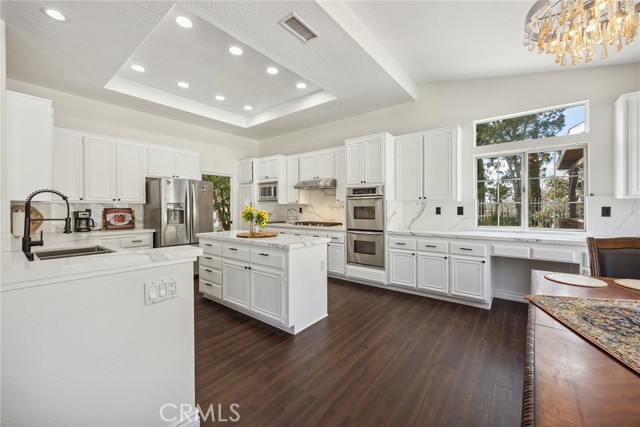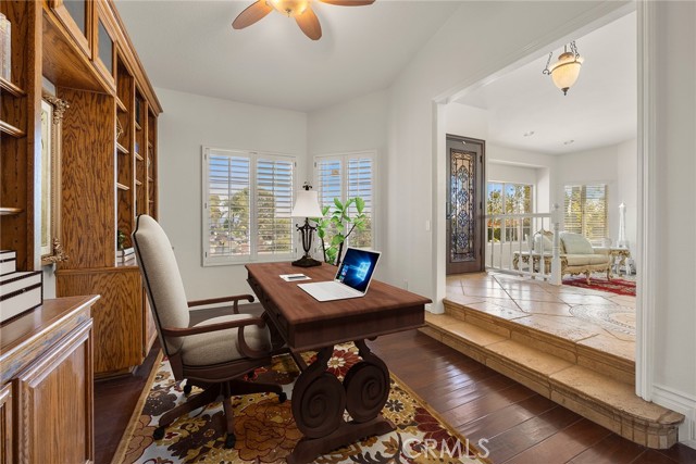 Welcome to 4885 Via Del Cerro, in the “Land of Gracious Living”, Yorba Linda. This luxurious single story semi-custom view estate encompasses aprox. 4,200 sq ft between the main house and 1,100 sq ft ADU/NextGen/Man Cave. It is located on one of the most private, peaceful lots in the city. If you are looking for privacy, and tranquility you must explore this stunning treasure. Situated on a premium view lot spanning over 1/3 acre and set up for entertaining on a grand scale, this is a one of a kind property with parking for at least 10 cars. Your neighborhood schools are some of the best, highly ranked, award winning schools in Orange County (Travis Ranch and Yorba Linda HS)! Yorba Linda ranks high in safety, is centrally located and enjoys the celebrated Black Gold Golf Course. Enjoy nature’s artistry while relishing the sweeping views of rolling hills, mountains, colorful sunsets, Catalina, and shimmering evening lights twinkling from your front porch. Your outdoor amenities include a pickleball court, perfect for basketball, pebble tec pool with water slide, spa, outdoor kitchen complete with TV, BBQ, fridge, and stunning ambiance under the lighted, natural wood cover. Showcasing more than $175K in upgrades, this private and opulent estate is ready for you. From the impressive curb appeal to the stunning kitchen, complete with new quartz countertops, 5 burner (including wok burner) gas cooktop, center island and double ovens. The expansive primary bedroom suite serves as a secluded sanctuary, complete with a cozy fireplace and sitting area. The new remodeled owner’s suite bath, with quartz counters, shower, dual sinks, custom shower floor, and jetted soaking tub are just the beginning. Double front entry doors, tumbled travertine marble – complete with custom medallion, lovely wood flooring, remodeled hall bath and powder room round out just some of the upgrades. Newer imported carpet in the ADU and owner suite; this exclusive and unique home cannot be duplicated. The inviting atmosphere of this home is complemented by 4 interior fireplaces. The ADU can be used for next generational living, or as a rental to generate additional income (1 bedroom, 1 bath, private entry, and high ceilings), or you can make it a man cave/entertainers paradise with a stage for karaoke, wall size projection TV, pool table, poker tables and wall length bar (could be made into a kitchenette). The possibilities are limitless, and the opportunity to own this home is priceless!