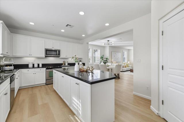Discover this stunning remodeled end-unit townhouse in the highly sought-after City Ventures community of Sunnyvale! Featureing a spacious private front yard, a large sunny balcony, and is also equipped with solar panels, providing modern efficiency. Inside, the open-concept kitchen with quartz countertop, sleek cabinetry, and stainless steel appliances. A rare first-floor suite with its own entrance is ideal for parents, extended family, or use as a private rental. Upstairs, the bright primary suite has abundant natural light, complemented by two additional bedrooms that provide flexibility for family, guests, or a home office. The oversized two-car garage offers plenty of storage space and convenience, while the HOA covers water and garbage for easy low-maintenance living. Walking distance to Apple Campus 3, Applied Materials, Fair Oaks Park, and Magical Bridge Sunnyvale, with Downtown Sunnyvale, Whole Foods, Costco, Target, and the farmers market just minutes away. Families will appreciate nearby top-rated private schools (Stratford, The Kings Academy, BASIS) and effortless commuting via Caltrain, Hwy 101, Lawrence Expressway, and quick drives to LinkedIn, Google, and Meta. Must see!