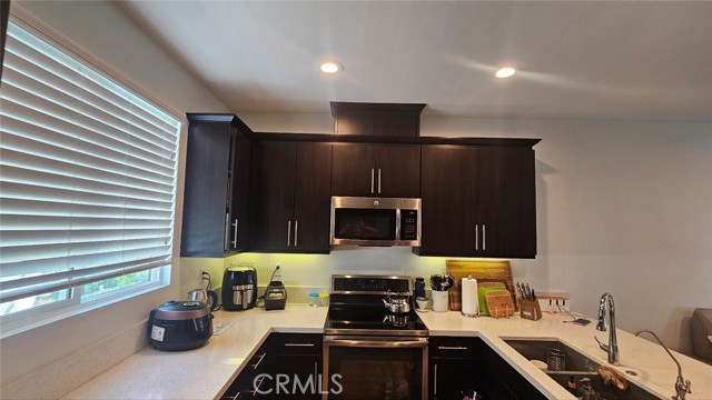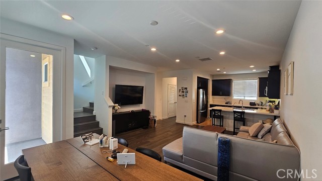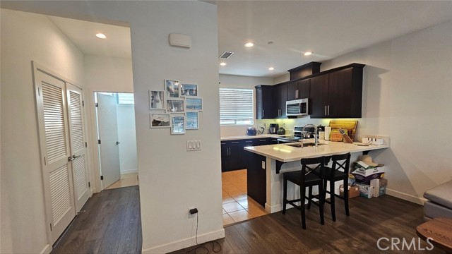 Welcome to this stunning modern luxury condo, built in 2016, featuring 2 bedrooms, 2.5 baths, and a versatile den on the entry level. The 2-car attached garage offers ample space for your vehicles and storage, complete with installed EV charging stations.rnrnThis eco-friendly home is equipped with advanced solar panels (included and paid off!), an Energy Star-rated hybrid electric water heater, and a Nest thermostat, ensuring energy efficiency and sustainability. The rental includes a washer, dryer, refrigerator, and solar panel, making your move-in seamless.rnrnUpstairs, both bedrooms are designed for comfort, each boasting walk-in closets and private en-suite bathrooms. The entry level offers a large flex space, perfect for use as a third bedroom, home office, or additional living area. The entire house features wood flooring and recessed lighting.rnrnThe open-concept kitchen and living areas are ideal for entertaining, and you’ll find a convenient half bath and side-by-side laundry in the hall closet on this level.rnrnRent includes all community amenities such as a swimming pool, spa, cabanas, and BBQs. You’ll also enjoy access to a private dog park and a large community park with a playground and ample seating.rnrnLocated within walking distance of The Source mall and just blocks away from Buena Park Downtown/Buena Park Mall, this home offers a prime location for shopping, dining, and entertainment. Enjoy quick access to the 91 and 5 freeways, and proximity to Knott’s Berry Farm and Disneyland. Don’t miss the opportunity to rent this exceptional home in the Parker Collection community!