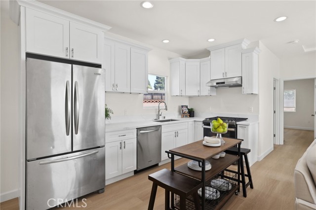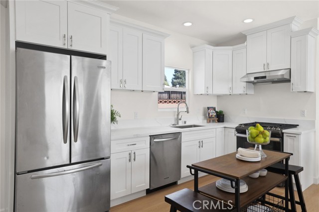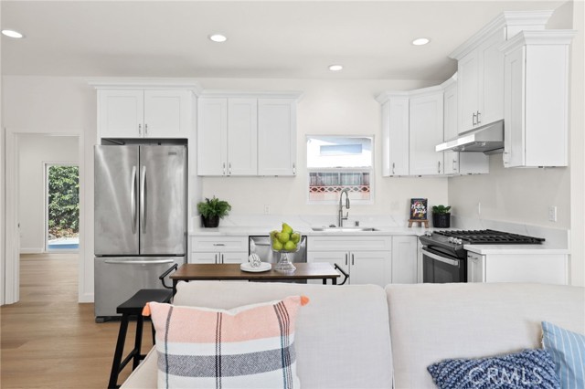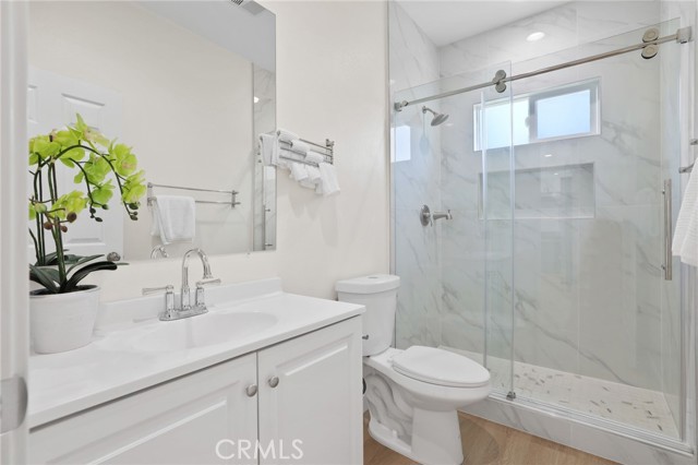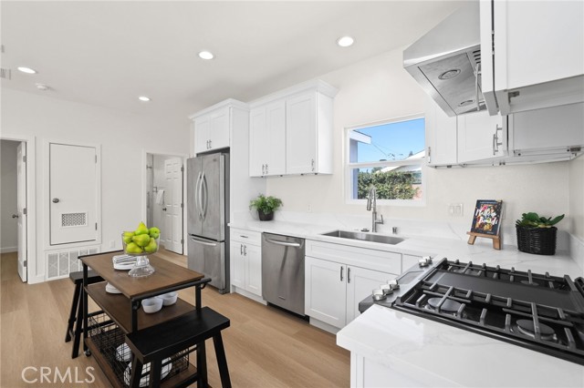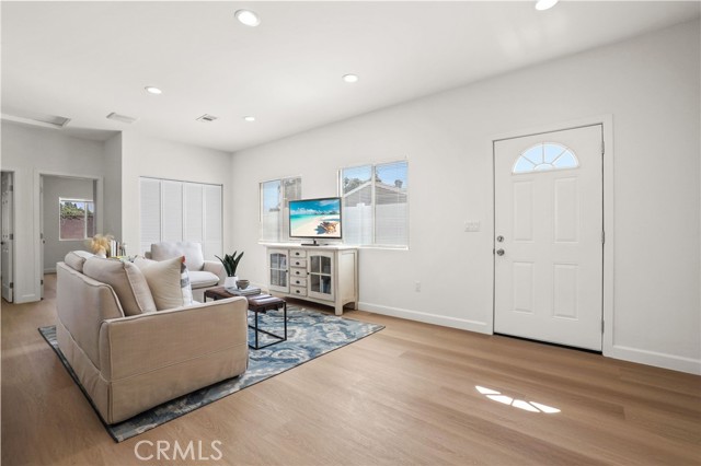 Tucked away at the rear of an expansive 11,000 sq. ft. lot, this stunning brand new built 4-bedroom, 2-bathroom ADU offers contemporary living with energy efficiency in mind. Featuring owned solar panels, this home helps reduce utility costs while providing modern comfort. Step inside to high 9-foot ceilings and LED recessed lighting, creating a bright and airy atmosphere. The open-concept kitchen flows seamlessly into the living room and is equipped with upgraded appliances for effortless entertaining. Throughout the home, you’ll find vinyl wood flooring for a sleek, low-maintenance touch. rnEach bedroom boasts **large mirrored wardrobe closets**, offering ample storage space. Additional conveniences include in-unit washer/dryer hookups and a private concrete back patio, perfect for outdoor relaxation. Experience stylish and efficient living in a prime Garden Grove location. Schedule a tour today! rnrnNOTE: Street parking only.