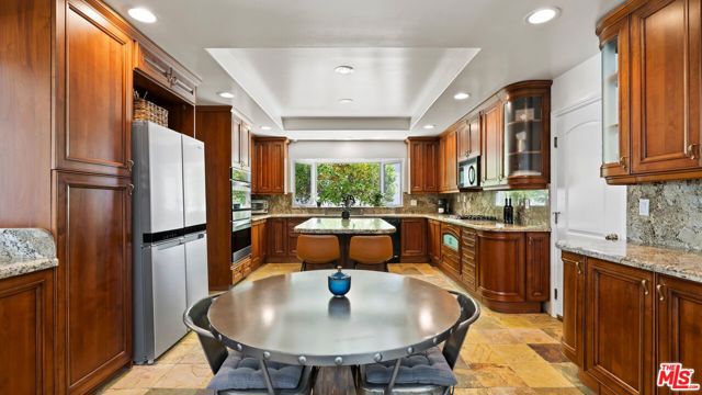 An artist’s haven, this single-level Mediterranean gem has housed entertainment professionals from writers and actors to painters and songbirds, all of whom have derived inspiration from the hilltop valley views and surrounding mountain scapes. Aptly named after famed Edgar Rice Burroughs’, Tarzan of The Apes, the hills of Tarzana are among the 550 acres of goat ranch once owned by Mr. Burroughs himself, purchased by the profits of his fantasy character/the fictitious Lord of the Jungle. Showcasing inescapable views of the San Fernando Valley, the Santa Monica Mountains, and the San Gabriel Mountain Range, this eclectic family home offers an escape from the hustle and bustle of city life, while conveniently located 25 miles from downtown Los Angeles. Proudly owned for more than 30 years, this property was extensively renovated in 2001 by the homeowners and has been recently enhanced with fresh interior and exterior paint, newer refrigerator and washer/dryer, tankless water heater, gas range, fireplace, windows, ceiling fans/lights, plumbing fixtures, backyard turf/lounge area, front landscape, solar landscape lights, solar motion detector lights, HVAC unit, and renovated primary bath/shower. Fruit trees surround the property including a Pomegranate tree, Fig tree, Loquat tree, Orange Tree, and Lemon/Citrus tree. Located within the Los Angeles Unified School District, this tranquil home is in close proximity to top-rated schools, hiking and biking trails, luxury markets, palatable farm-to-table dining, and is just 20 miles to the beach. LEASE OFFERED | 12-months minimum ~ Tenant to obtain renter’s insurance policy ~ RentSpree application required with $39.99 application fee. All tenants over the age of 18 must complete an application and be a party to the lease agreement.
