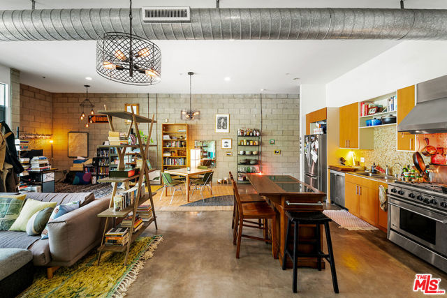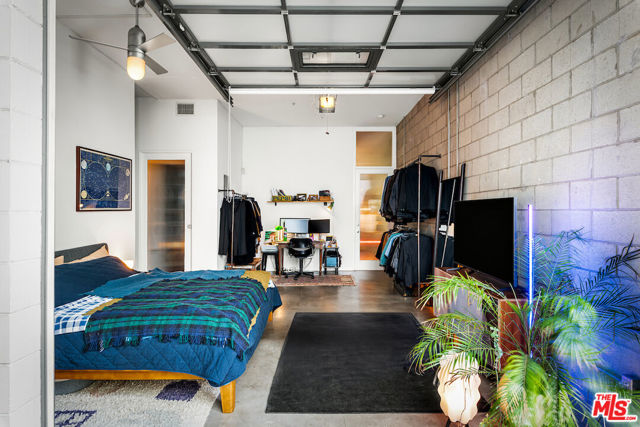 Designed by acclaimed architects Pugh + Scarpa, this Santa Monica live-work loft seamlessly combines style and practicality. Situated in the heart of the city, itoffers an open floor plan with exposed steel beams, polished concrete floors, and expansive floor-to-ceiling windows that flood the space with natural light. The kitchen is equipped with premium stainless steel appliances, a spacious center island, and custom cabinetry. The living area opens up to an east-facing patio. This loft includes one bedroom and two full bathrooms, with the primary suite featuring a luxurious ensuite bath with a large shower and dual vanities, along with generous storage and closet space. A fully functioning garage door in the bedroom adds a unique touch, providing a seamless indoor-outdoor experience. Additional amenities include in-unit laundry, side-by-side garage parking, guest parking, and secure building entrance.