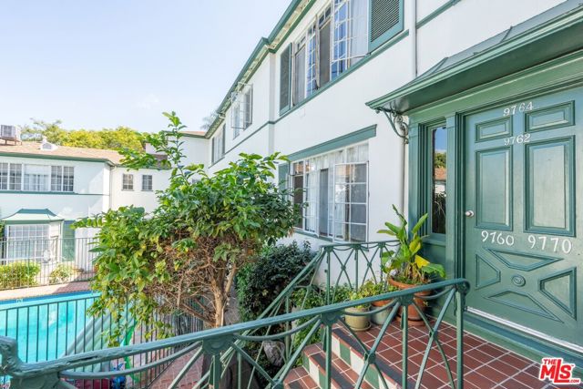 Bright, spacious 2-bedroom, 1-bathroom second floor unit situated in a classic boutique Beverly Hills apartment building. This charming unit features original hardwood floors, period details and large rooms throughout. The kitchen maintains its original character, while the bathroom has been updated with subway tile, new vanity, and modern fixtures. The charming 1939 building maintains wonderful original detail, both inside and out. Building amenities include a sparkling courtyard pool & community laundry room. Unit comes with private laundry outside of the unit & one covered parking space in carport. Conveniently located next to Roxbury Park, a short distance to Beverly Hills High School and all the best that Beverly Hills has to offer. A turnkey residence and a wonderful place to call home!