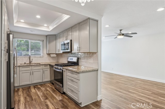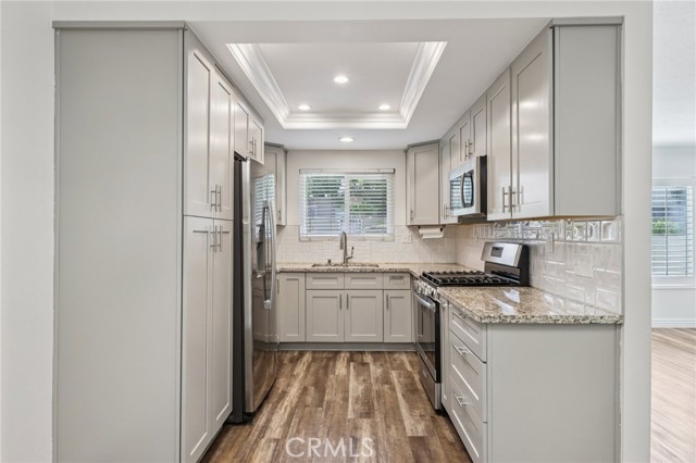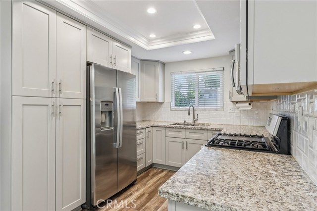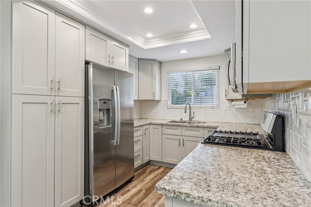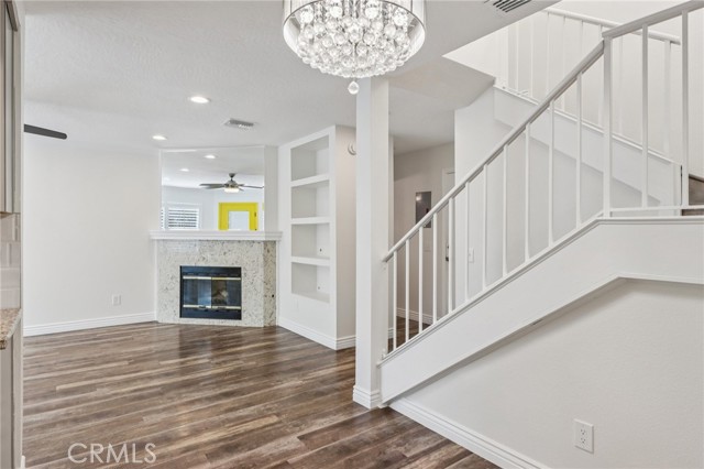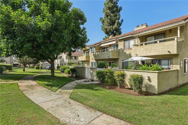 Located in the desirable gated community of Seneca Village, this updated 3 bedroom, 2.5 bathroom residence offers approximately 1,450 square feet of living space. The main level features an open-concept layout with natural light, luxury vinyl flooring, recessed lighting, and a cozy fireplace. The kitchen includes modern stainless steel appliances and abundant cabinet storage.rnrnThe spacious primary suite offers vaulted ceilings, a dual-sink vanity, and a private balcony, while the secondary bedrooms are well sized, including one with its own balcony. Additional highlights include in-unit laundry with washer and dryer, a two-car garage with shelving and storage, and a private front patio with built-in BBQ.rnrnCommunity amenities include a pool, spa, and playground. Conveniently located near shopping, dining, entertainment, and major commuter routes including the 60 Freeway, this home blends comfort and convenience in a sought-after setting.rnrnCheck out the virtual tour to preview the property before viewing in person.