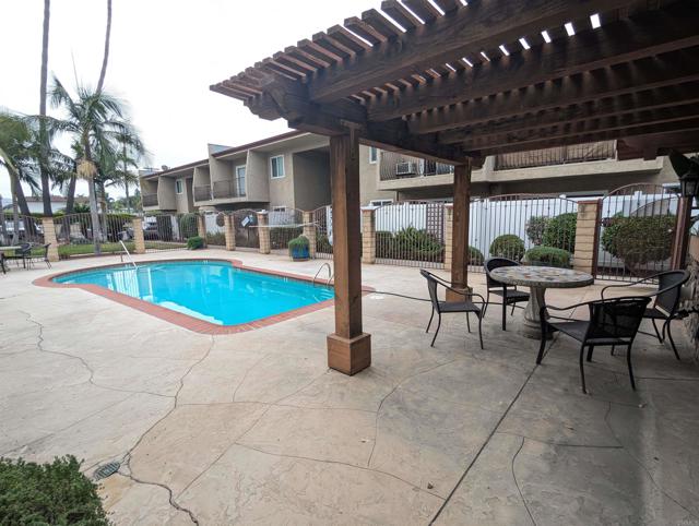 Top floor end unit 1 bedroom condominium with balcony and 1 assigned parking space in nice gated community. In unit laundry and a view towards the swimming pool. Fresh paint, granite counters, dual pane windows, and stainless appliances. Walk-in closet. Water, sewer, and trash included. Close to commute routes and shops. Available now.