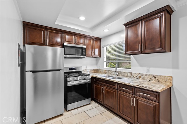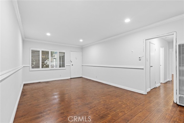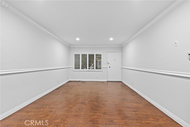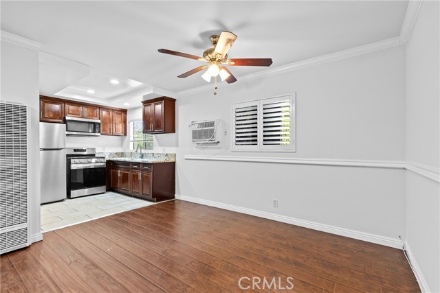 Welcome to this stylish and move-in ready one bedroom, one bathroom condo offering approximately 800 sq ft of comfortable living space in a well-maintained complex. This bright unit features wood-look flooring throughout, crown molding, recessed lighting, and ceiling fans in both the living room and bedroom. Enjoy cooking in the upgraded kitchen, complete with stainless steel appliances, granite countertops, and rich cabinetry. The open-concept layout flows into the dining area and spacious living room, perfect for entertaining or relaxing. Step outside to your private balcony, ideal for enjoying fresh air. The community also offers access to a sparkling shared pool, perfect for sunny days.