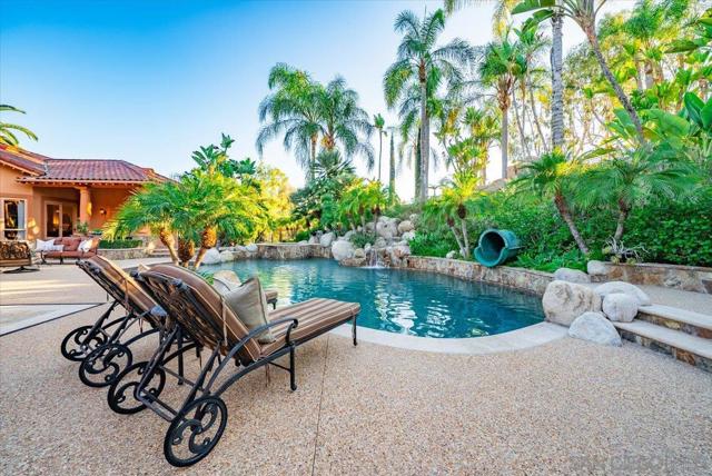 Prepare to be captivated by Blossom Valley’s most exceptional estate, a privately gated sanctuary that redefines Southern California living. From the moment you enter through the grand gates, you are greeted by a sprawling 6.54-acre estate, offering unparalleled privacy and space. This estate is meticulously designed for both lavish gatherings and intimate celebrations, making it a true entertainer’s paradise. The heart of this home is a chef’s dream kitchen, featuring a huge prep island with a custom decorative extra-thick granite slab, a professional Wolf range, & Sub-Zero refrigerator, ensuring every culinary endeavor is a delight. The sophisticated 600 bottle Wine Cellar, an ideal for tastings and storing your prized collection. Featuring a 600 sq’ guest house, perfect for visitors or extended family. An impressive 2 RV garage 40’ wide by 50’ long, with man cave/workshop & bathroom. The game room provides endless entertainment possibilities. The outdoor oasis features a magnificent resort-like pool and spa with enchanting waterfalls and an exhilarating 90-foot waterslide, promising endless fun and relaxation. The outdoor entertainment pavilion features a full kitchen, living room w/ cozy wood-burning fireplace. Sports enthusiasts will appreciate the private tennis & pickleball court. Inside, the master suite offers a sanctuary of luxury, complete with a Jacuzzi tub w/ fireplace, & a steam shower/sauna featuring aromatherapy for ultimate rejuvenation. Equipped w/ a state-of-the-art 108 panel solar system for energy efficiency and pool solar for year-round enjoyment.