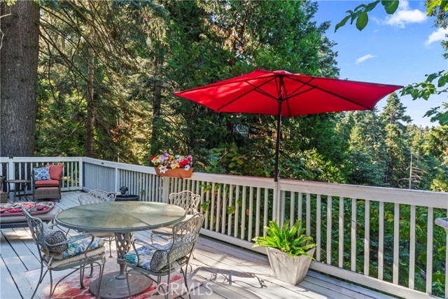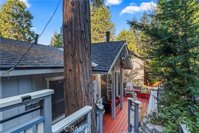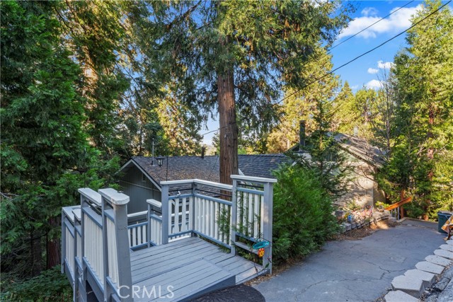 Welcome to this warm and charming cabin, perfectly situated in a serene setting. Step out onto the expansive private deck and take in the stunning forest views that surround this inviting home. Inside, you’ll find a thoughtfully designed layout with 2 bedrooms and 1 bath on the upper level, along with an additional bedroom, bath, and family room on the lower level, ideal for multigenerational living or guest accommodations. Sit by the gorgeous brick fireplace and enjoy sunlight entering via the expansive front windows. The home has been remodeled by a custom designer. Upgrades include granite countertops and modern sinks, new plumbing, electrical, and sewer piping, new Andersen doors, two wall furnaces, two portable AC units, new high-efficiency water heater and a 25-year roof for peace of mind. Additional highlights include enclosed under-house storage, two convenient parking spaces, a full land survey with plot maps, and newer appliances. Lovingly maintained by the current owners and never rented, this home combines modern upgrades with a cozy feel. Conveniently located just a 5 minute drive from Lake Arrowhead’s restaurants, shopping and scenic mountain activities, it’s sure to give rest and relaxation vibes the minute you walk in the door.