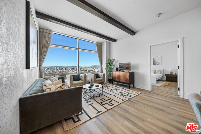 Live above it all in one of Los Angeles’ most prestigious addresses. Perched on the 32nd floor of the iconic Ritz-Carlton Residences, this impeccably remodeled and highly upgraded residence defines modern luxury living. From the moment you step inside, you are greeted by walls of glass that frame sweeping, unobstructed vistas from the shimmering Pacific Ocean to the majestic mountain ranges, the legendary Hollywood Hills, Griffith Observatory, and the Hollywood Sign. Facing west, this residence claims the building’s most coveted orientation, offering breathtaking daylight panoramas, dramatic sunsets, and a dazzling city skyline at night. The interior has been thoughtfully reimagined with designer details and timeless finishes: custom wood beams, striking gold and black accents, wide-plank flooring, and soaring ceilings that enhance the sense of volume and light. The sleek gray kitchen cabinetry complements the open layout, while a reconfigured floor plan now features a valuable additional walk-in closet in the bedroom, maximizing storage and functionality.Conceived by world-renowned Gensler and developed by AEG, The Ritz-Carlton Residences provide an unmatched lifestyle of refinement and ease. Residents enjoy five-star, white-glove services including 24-hour concierge, valet, doorman, security, housekeeping, and access to the Ritz-Carlton’s signature spa and dining venues. Amenities include a resort-style rooftop saltwater pool with private cabanas and bar service, state-of-the-art fitness facilities, and more. Set in the heart of the city’s most vibrant district, you are just steps from award shows, world-class concerts, major sporting events, and acclaimed restaurants. A true sanctuary in the sky, this residence includes one valet parking space and one storage unit. Square footage is estimated. Experience the height of sophistication and the ultimate in city living.