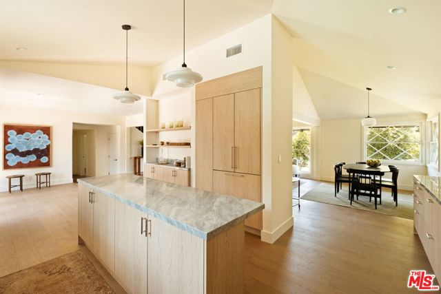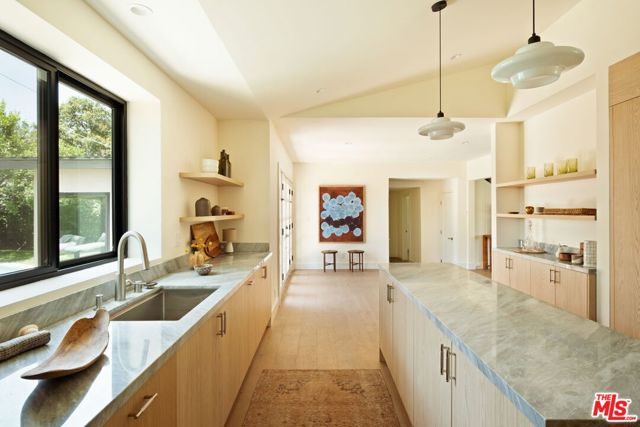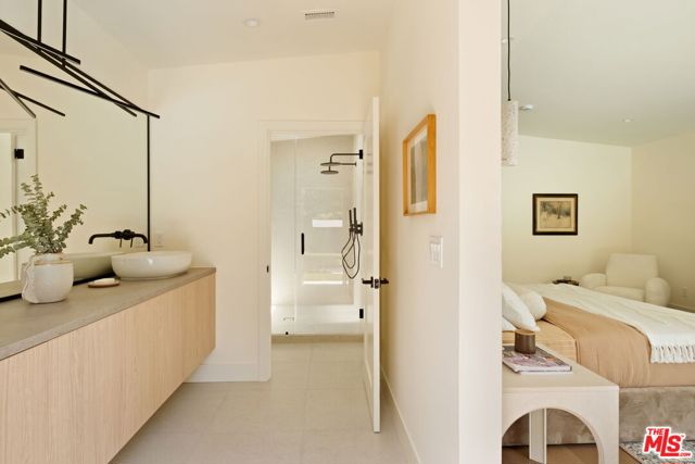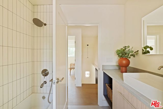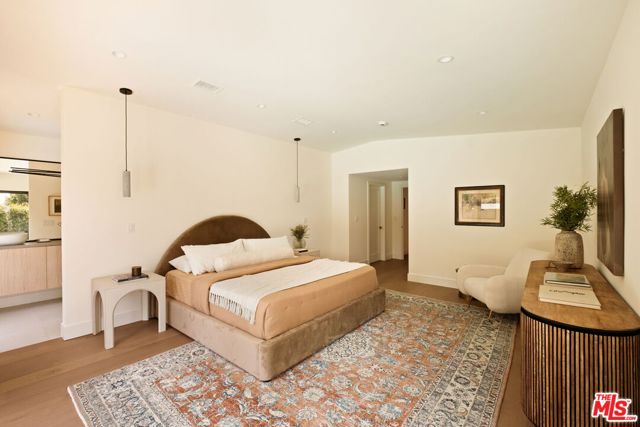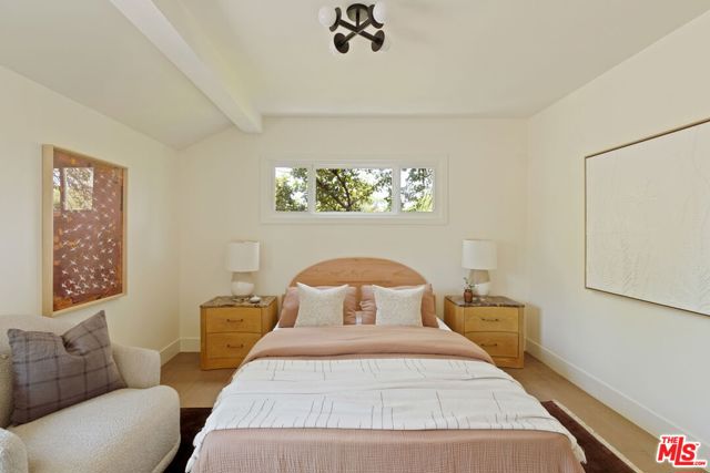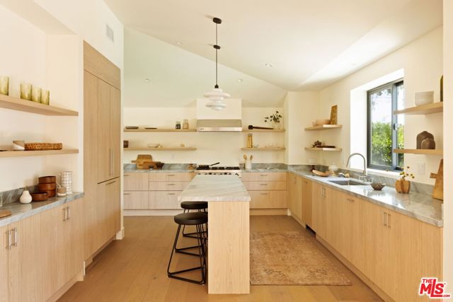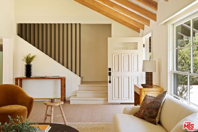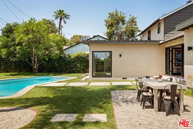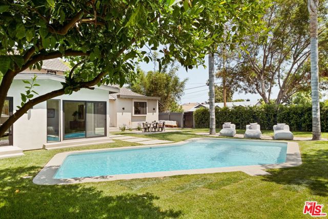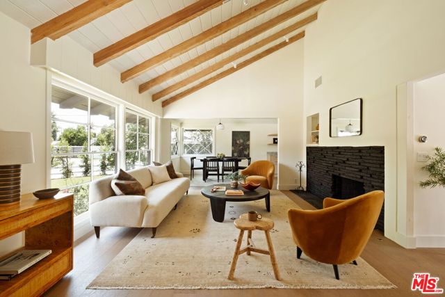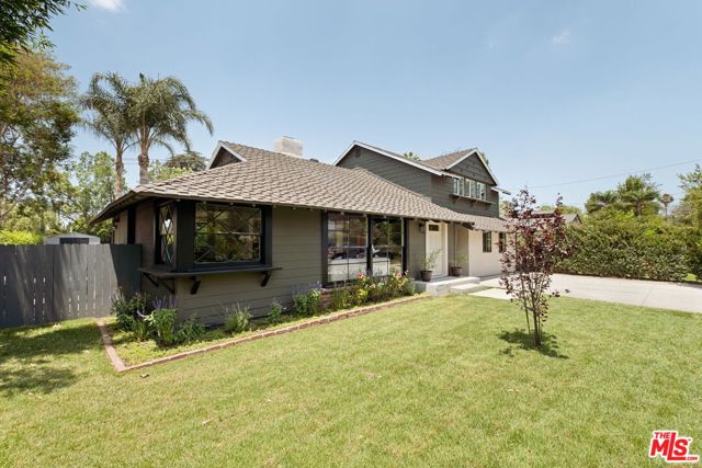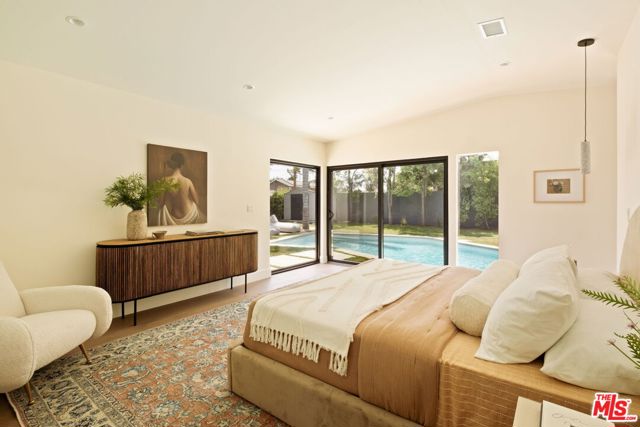 Welcome to this exquisite, renovated mid-century home, nestled in the heart of the valley. From the moment you arrive, you’ll be captivated by the home’s timeless elegance and stylish design. Featuring four generous bedrooms and three meticulously upgraded bathrooms, this property sits on an expansive lot complete with a large pool and a spacious backyard with two large palm trees at the end of the pool. Inside the living room you are welcomed by abundant natural light, high exposed beam ceilings, and a striking fireplace that creates a warm and welcoming atmosphere. The adjacent dining area features diamond lattice windows that add a touch of charm and character. At the heart of the home lies a spacious chef’s kitchen designed for both function and style. It boasts elegant marble countertops, custom cabinetry, a convenient breakfast bar, a premium Viking stove, and a beautifully integrated Dacor built-in refrigerator and freezer. French doors lead directly from the kitchen to the stunning backyard and pool. Down the hall, you’ll find a guest bedroom and a luxurious primary suite. The primary offers a generous bedroom area, a massive walk-in closet, and a spa-like ensuite bathroom complete with double sinks, a large walk-in shower, and sleek porcelain countertops atop custom cabinetry. Upstairs you’ll find two more bedrooms and a large bathroom thoughtfully laid out so the kids have a quiet place to relax while the adults continue outside near the pool on long summer nights. The expansive backyard boasts a spacious pool, ample room for entertaining, mature trees and ficus hedges for added privacy, and two towering palm trees that capture the quintessential California style. This property provides easy access to Sherman Oaks, Burbank, Encino, Studio City and more. It’s just 10 minutes from the Sherman Oaks Whole Foods and Ventura Blvd. It is a special, quiet retreat that captures the very best of life in the San Fernando Valley.