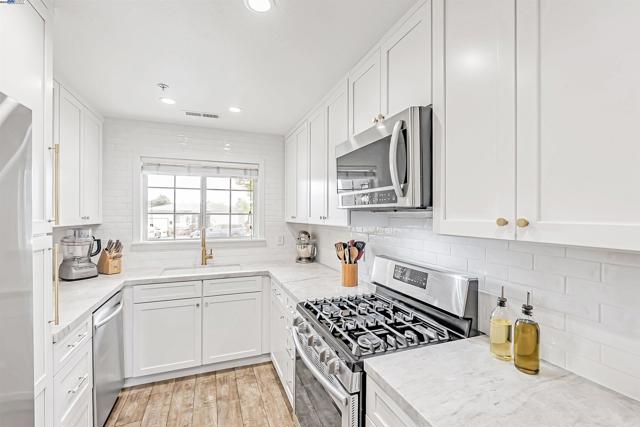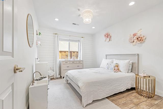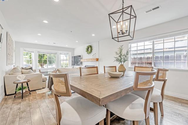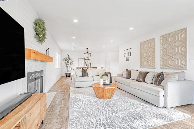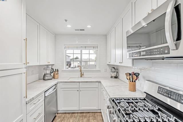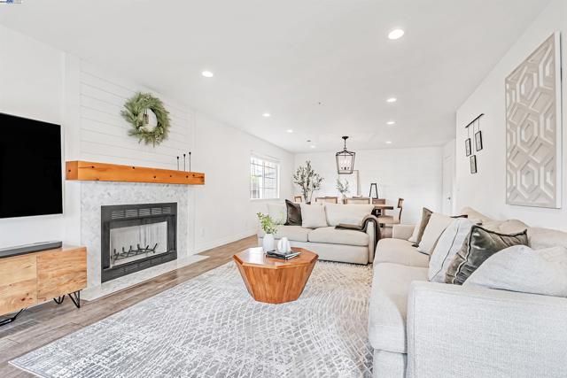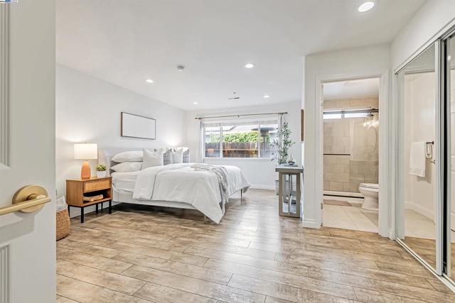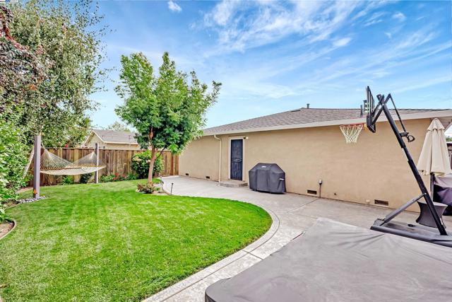 Framed by the foothills, this beautifully crafted single-story home offers the perfect blend of location, space, and modern upgrades. An open and inviting floor plan seamlessly connects the living, dining, and kitchen areas, creating a bright and functional space for everyday living. Thoughtful details throughout include central heating and air conditioning, updated bathrooms, quality laminate flooring, recessed lighting and dual-pane windows. The gorgeously remodeled kitchen offers custom white cabinetry, quartzite countertops, subway tile backsplash, and stainless steel appliances. Retreat to the spacious primary suite, complete with four closets for ample storage and a private bathroom. Outdoors, the backyard is designed for enjoyment with a stamped concrete patio, lush lawn, and built-in hammock poles that invite relaxation or fun in the sun. Outdoor enthusiasts will love the close proximity to Alameda Creek Trail, Quarry Lakes, and Coyote Hills, offering endless opportunities for hiking & biking just minutes from home. Perfectly positioned for commuters, the home is walking distance to Union City BART and offers easy access to I-880, I-580, I-680, and the Dumbarton Bridge. With its blend of modern upgrades and prime location, this Union City gem is ready to welcome you home.