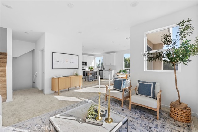 Welcome to Valley Villas, a private, gated community featuring 58 all-electric, tri-level townhomes. Ideally situated just minutes from the 405 freeway, this location ensures a quick commute and easy access to everything you need. Experience the ease of low maintenance, urban living in this brand new home.rnrnThis modern townhome includes a 2-car garage, foyer, and covered entry on the ground level. The second floor offers a bright, open space with 9-foot ceilings, perfect for entertaining. The kitchen is a chef’s dream, complete with a walk-in pantry. Sliding doors from the dining room lead to a balcony, allowing natural light and fresh breezes to flow through. A convenient powder room is also located on this level.rnrnOn the top floor, the primary bedroom suite includes a walk-in closet. The second and third bedrooms share an en-suite bathroom, providing both privacy and convenience. A laundry area is also located on this level.rnrn”Photos are for illustrative purposes only and may not represent the actual unit/home. Actual finishes and features may vary.”