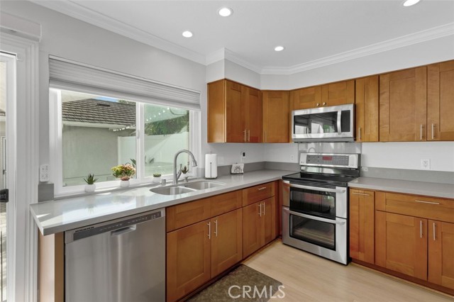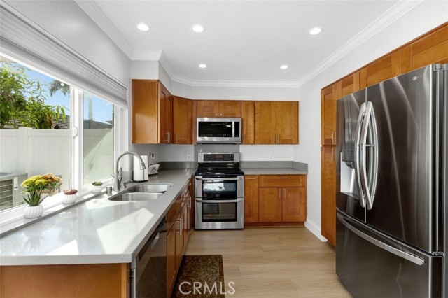 Step into this stylishly updated 3-bedroom, 2-bathroom townhome offering 1,121 square feet of thoughtfully designed living space. From the moment you enter, you’ll notice the bright and inviting interior, highlighted by luxury vinyl plank flooring and a neutral, modern color palette.rnrnThe remodeled kitchen features quartz countertops, stainless steel appliances, and an adjacent dining area that flows seamlessly for everyday living and entertaining. Both bathrooms have been tastefully renovated, including a recently updated downstairs bath with a walk-in shower. Upstairs, the remodeled full bathroom complements the spacious bedrooms, providing comfort and convenience.rnrnEnjoy the privacy of your own enclosed courtyard—perfect for morning coffee, outdoor dining, or a small garden. An attached 2-car garage provides secure parking and additional storage.rnrnResidents of this community enjoy access to a sparkling pool, and front yard maintenance, all with the benefit of low HOA dues at just $310 per month. The home is ideally located across from award-winning Golden Elementary, close to neighborhood parks, and just minutes from shopping, dining, and entertainment.rnrnWith modern upgrades, a functional floor plan, and a prime location, this townhome is the perfect blend of comfort, style, and convenience.