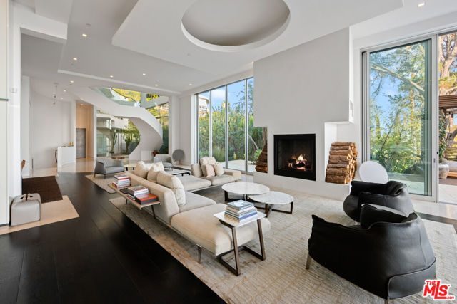 Perched at the End of a Prime Bird Streets Cul-de-Sac, this extraordinary architectural estate spans almost 10,000 square feet with six bedrooms, eight baths, and sweeping cinematic views over the city lights. Offering rare duality, the residence is supremely private yet just minutes from the world-class dining, shopping, and entertainment of West Hollywood and Beverly Hills. A gated drive opens to a secure motor court and expansive garage with parking for up to twelve cars. Inside, a soaring 2,500-square-foot great room serves as the centerpiece of the home, seamlessly connecting to a chef’s kitchen with oversized island, butler’s pantry, and professional-grade appointments. Dedicated wellness spaces including a private salon and fully equipped gym tucked beneath expansive outdoor decks elevate daily living to resort-caliber standards. The primary suite is a sanctuary, complete with a private office, dual walk-in closets, and a spa-like bath featuring an infinity soaking tub suspended over the skyline. Outdoors, the estate unfolds into a very large flat entertaining lawn, framed by massive wooden decks that dissolve the boundaries between indoor and outdoor living. A dramatic, resort-scale infinity-edge pool anchors the grounds, complemented by an outdoor kitchen, private theater, and Tuscan olive garden all oriented to capture the endless panoramas of the Hollywood Hills.
