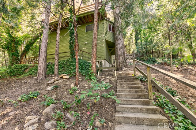 Nestled among the trees with a serene, treehouse-like feel, this home offers endless potential and plenty of space to make it your own.rnThe main level features an ¾ bathroom, open-concept kitchen and family room that flows seamlessly into the dining area, with sliding doors leading to a spacious entertaining deck. Downstairs, you’ll find two bedrooms and a full bathroom, along with abundant storage. The lowest level includes two additional rooms with washer/dryer hookups and a bonus storage room, offering flexibility for hobbies, a workshop, or extra storage space. Adding to its appeal, the property includes three additional lots, ensuring extra privacy along with a slight peekaboo view of the lake. Much of the flooring has already been removed, providing a blank slate for your design vision. rnWith some TLC, this home could truly shine! Great commuter location, conveniently located close to Highway 18, and 5 minutes away from Lake Gregory.