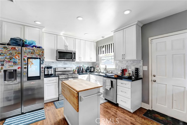 This lovely home is a 1901 Craftsman Bungalow with loads of charm!! This fully updated character home has major curb appeal classic features, the charm continues as you step into the living room with its refinished wood floors that continue throughout the home, gently coved ceilings, and upgraded windows. Through the graceful archway step into a cozy dining room with abundant light and original built-ins. Adding to the open floor plan is the beautifully updated kitchen with newer appliances, granite counters, and marble backsplash. It features 2 generous bedrooms with great natural light, and a bright and upgraded bathroom with marble mosaic flooring, and subway tile surrounding the tub complete this perfect home. It offers newer A/C just 3 years old, 2 year old water heater and upgraded electrical. Garage was converted to a studio/room with bathroom. It has so much potential with the amount of space in the backyard.This home is perfect for entertaining, and keeps all the charm of the past, but with all the upgraded desirable amenities. Absolutely beautiful and TURNKEY!!