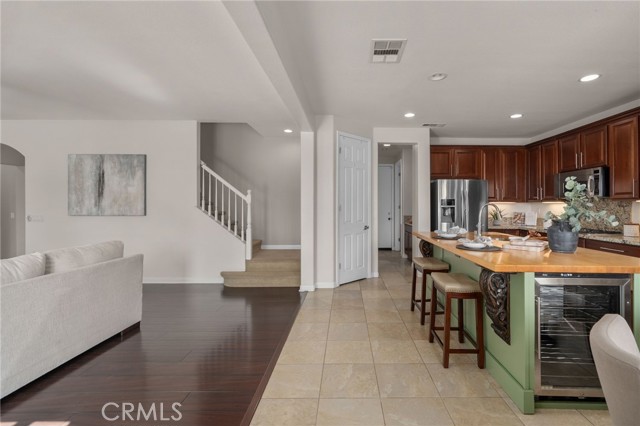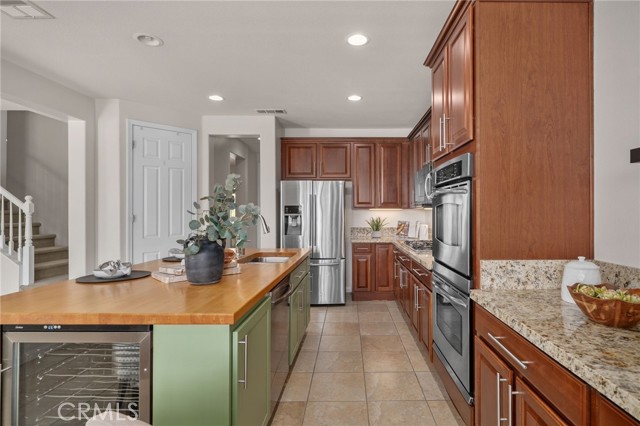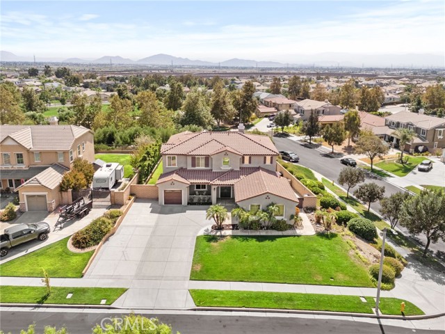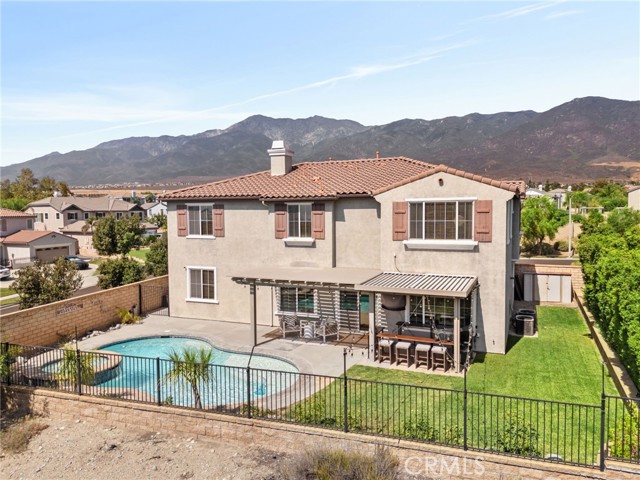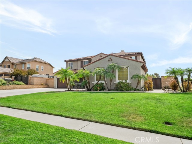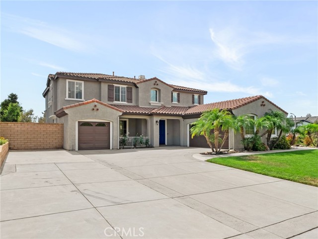 This stunning Rancho Cucamonga residence showcases a highly sought-after floor plan with a full bedroom and bathroom on the main level, perfect for multigenerational living, overnight guests, or a private office, plus three additional bedrooms, two bathrooms, and a spacious loft upstairs. Perched on a spacious and private corner lot of over 13,000 sq. ft., the home offers more than 3,200 sq. ft. of thoughtfully designed and generously sized living space.rnrnAt the heart of the home, the gourmet kitchen is a chef’s dream, featuring dual ovens, stainless steel appliances, a beverage cooler, oversized working island with cutting-board top and bar seating, a walk-in pantry, abundant cabinetry, and a dedicated scullery/coffee bar. The kitchen opens seamlessly to the expansive family room with a cozy fireplace, creating the perfect space for everyday living and entertaining. The layout also includes formal living and dining areas, a dual-entry staircase, and a generous foyer that sets the tone for the home’s open flow and scale.rnrnUpstairs, the elegant primary suite offers a spa-inspired bath with soaking tub, walk-in shower, dual vanities with sinks, and an oversized custom wood-organized closet with extensive shelving and racks. The shared hall bath also features dual sinks, providing convenience for busy mornings. Secondary bedrooms and a spacious loft add flexibility for work, play, or relaxation.rnrnOutdoor living is unmatched with a sparkling pool featuring a sun step with umbrella sleeve, spa, and covered patio. The property offers two distinct side yards, one gated and another expansive grassy yard with RV potential. A charming front porch and windows throughout the home showcase breathtaking views of the San Gabriel Mountains, including majestic Cucamonga Peak. rnrnAdditional highlights include dual-zone HVAC, indoor laundry with sink and cabinetry, and attached 3-car garage with two distinct spaces: a full two-car garage with an expanded area and workbench, and a separate single-car garage, both with built-in storage and direct access to the home. The single-car garage offers versatile use as additional storage, a home gym, or a workshop.rnrnMove-in ready and located within the top-rated Etiwanda School District, close to Victoria Gardens, parks, and freeway access, all with no HOA and low taxes. This home combines comfort, functionality, and lifestyle in one of Rancho Cucamonga’s most stunning settings, an opportunity not to be missed.
