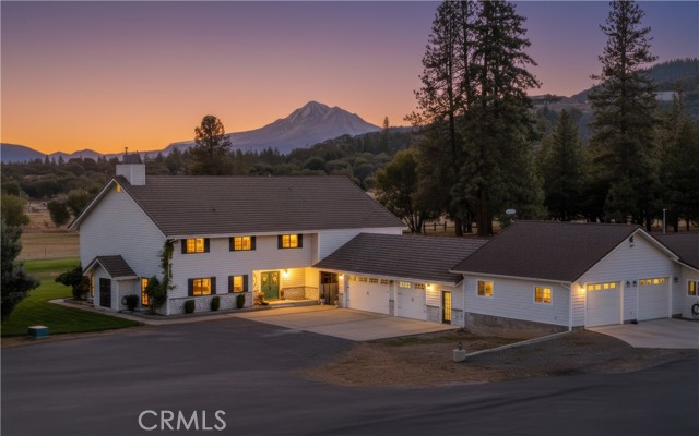Experience the true “Northern California” lifestyle from the serenity of this extraordinary estate. Offering a perfect blend of elegance, comfort, convenience and functionality this home showcases a completely reimagined interior with timeless craftsmanship, an abundance of natural light and expertly curated rooms. The primary suite offers a cozy corner fireplace and vaulted, exposed beam ceiling which leads into the stunning primary bathroom complete with dual sinks, sauna, soaking tub and walk-in shower. As you continue on, the ultimate showstopper is the luxurious walk-in closet, that rivals the size of many bedrooms. A 1500 sq. ft., ADA compliant casita was thoughtfully constructed in 2020; meticulously designed with 2 bedrooms, 2 bathrooms, full kitchen and its own 2 car garage creating the ideal separate living space for multigenerational living or a luxury retreat for weekend guests. Both homes center around a stunning outdoor gathering area complete with sparkling pool, slide, diving board and hot tub. Solar panels are an added bonus. Plus potential for a pickleball court! Whether you’re a seasoned equestrian or simply dreaming of peaceful rural living near the base of majestic Mt. Shasta, this property offers everything you need with a spacious horse barn including two stalls, tack room, and plenty of hay storage. A seasonal creek and scenic walking or riding trail winds through the property, ideal for trail rides or relaxing strolls. Make an appointment today for a private viewing!
