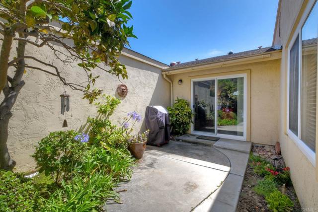 Move in ready South Carlsbad single story home. The property features two bedrooms with Jack and Jill bathrooms finished with travertine tile. The large primary suite has a walk-in closet with a private patio. The large spacious second bedroom has a sliding door access to the back patio. The living room has a gas fireplace. The eat in kitchen is ideal for your favorite meals with easy access through the sliding door to the large welcoming outdoor patio. The home has central heating and washer and dryer in the oversized one car garage with room for a second car on the parking pad. The spacious private landscaped front and back yard offers room to relax while enjoying the wonderful southern California weather. It will ensure you feel right at home whether you spend your time inside or out. This is a quiet and private location with easy access to the freeway. Light and bright interior with a green space right behind the property with access to community facilities of pool, spa and clubhouse. Enjoy the coastal breezes and walk or bike to the beach or parks. The property is a short drive to shopping, dining and one mile to the beach.