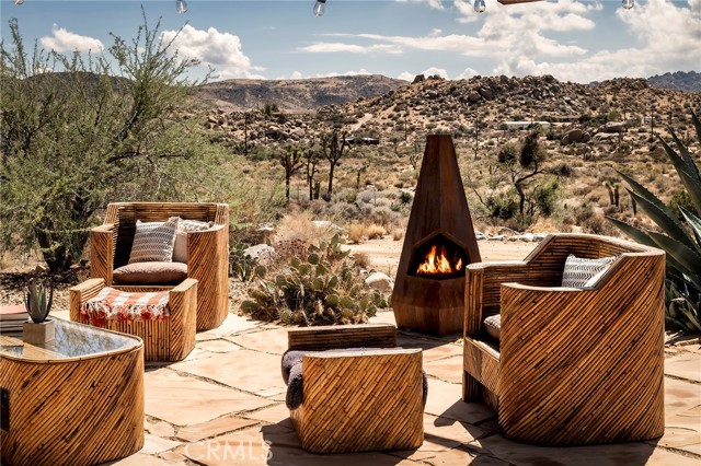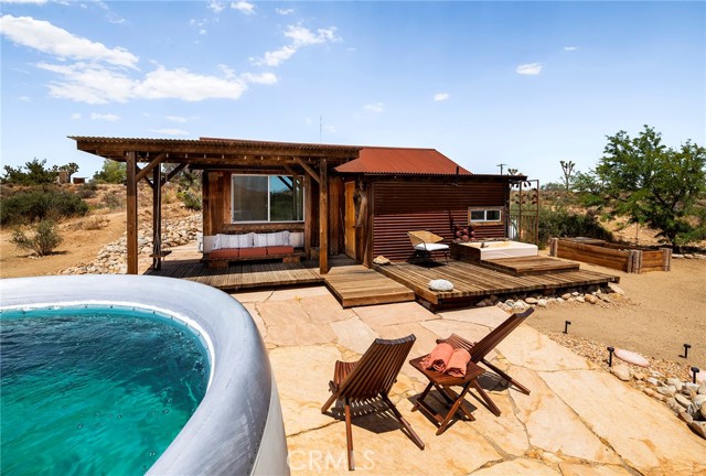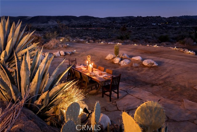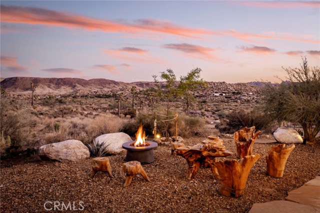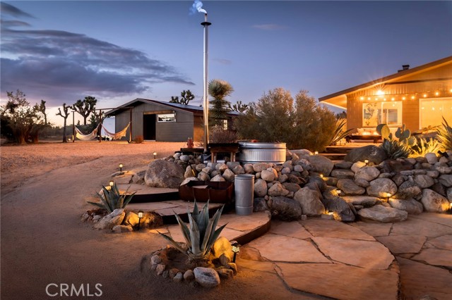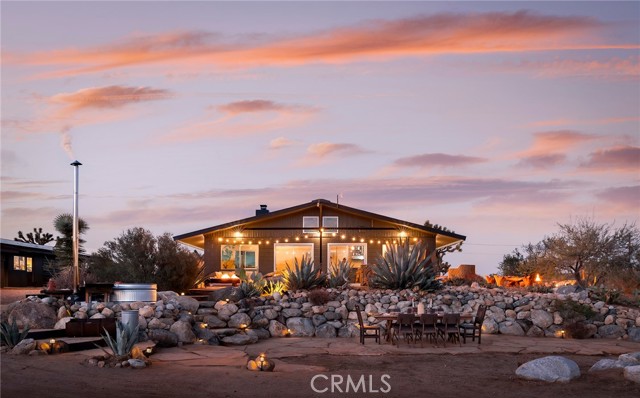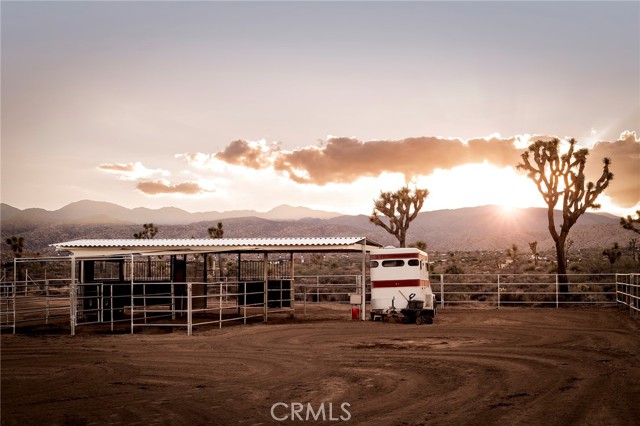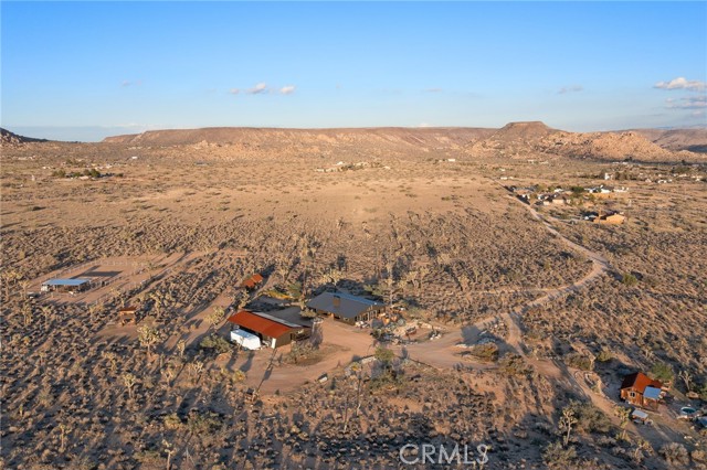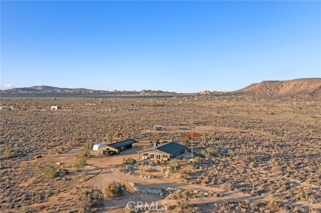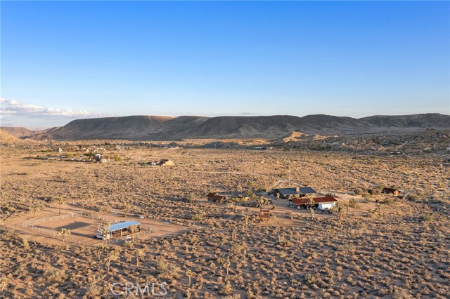 Surrounded by ancient boulders, lava buttes, and panoramic vistas of Pioneertown’s dramatic ridgelines, this 40-acre ranch offers a rare combination of naturalrnbeauty, privacy, and convenience, just minutes from Pappy & Harriet’s, Joshua Tree National Park, and the heartbeat of Pioneertown. Every area of the homerncaptures a different, breathtaking view of the surrounding desert and mountains, making the property as inspiring indoors as it is outdoors. Already one year intornthe subdivision process, the 40-acre parcel is being divided into multiple opportunities: 20 acres encompassing the main house, detached garage with office,rnoriginal 1932 homestead cabin, and stables, plus one 6-acre parcel and two 7-acre parcels. Easements are in place, and nearby electric poles provide future utilityrnaccess, making this not only a lifestyle compound but also an investment with substantial upside. The main residence spans 1,527 sqft with 2 bedrooms, 1rnbathroom, and a bonus office space located off the 2.5 car garage. Venetian plaster walls, a newly remodeled bath with Italian and Moroccan finishes, and a chef’srnkitchen with butcher block island and KitchenAid appliances blend rustic authenticity with modern comfort. A wood-burning fireplace with NuTone blowers andrnSolar power (while still on-grid) that’s paid for. The original 1932 homestead cabin (313 sqft) serves as a charming 1-bedroom, 1-bath retreat with full kitchen,rnsoaking tub, and dipping pool. Offering flexible options for guests, creative use, or additional income. Outdoor amenities include a cowboy hot tub beneath desertrnskies, an airplane engine pool, a horse corral, chicken coop with egg-laying hens, a playhouse, bike track, and garden room. This property is as much a retreat as itrnis an opportunity, a working ranch and a long-term investment poised for its next chapter.
