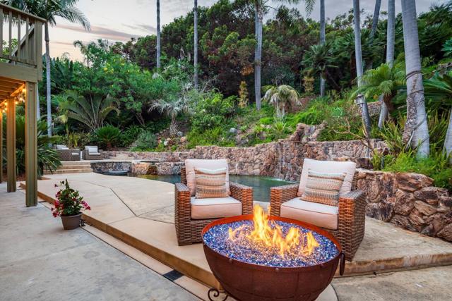Tucked away at the end of a quiet cul-de-sac in Cardiff, this beautiful 4-bedroom, 3-bath home sits on an oversized pie-shaped lot with a tropical backyard oasis. The lava rock pool and spa feature a built-in table and chairs, complemented by a cozy fire-pit. A custom addition offers soaring ceilings and pocket doors for seamless indoor-outdoor living. Enjoy surround sound throughout the home, a chef’s kitchen with African mahogany, top-tier appliances, and built-in cherry cutting board. With a master retreat, paid solar, 3-car garage, and just a mile to the beach—this home is a must see!