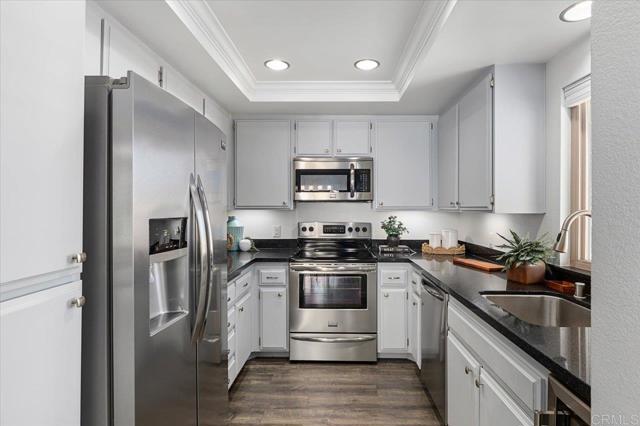 Beautifully Updated Townhome in La Costa! This light-filled 2-bedroom, 2-bath corner unit offers a thoughtfully designed floor plan that blends comfort, convenience, and style. The bright and airy living area features breathtaking mountain views and opens to a spacious balcony—perfect for entertaining or enjoying your morning coffee or evening glass of wine. The primary suite includes an ensuite bathroom and is large enough to accommodate a sitting area or home office setup, complete with built-in closets and custom shades. ?The updated kitchen boasts sleek stainless steel appliances, a brand-new wine refrigerator, and ample storage. Additional upgrades include dual-pane windows and sliders with shutters, central air conditioning with a Honeywell Smart thermostat? and 2 sets of Bluetooth ceiling speakers. ?In-unit laundry closet with a full-size washer and dryer. Highlights continue with an attached one-car garage featuring newly finished epoxy flooring and extra storage space. Additional parking includes a reserved space and a private driveway. A newly remodeled 20’ x 5’ storage room beneath the property offers exceptional space for all your storage needs. Residents enjoy resort-style amenities, including two sparkling pools, spas, and tennis courts. Ideally located minutes from shopping, dining, beaches, golf courses, the library, movie theaters, Omni La Costa Resort, Bressi Ranch, Palomar Airport, and more. Within a highly rated school district, this home presents an outstanding opportunity to live in the desirable La Costa community.